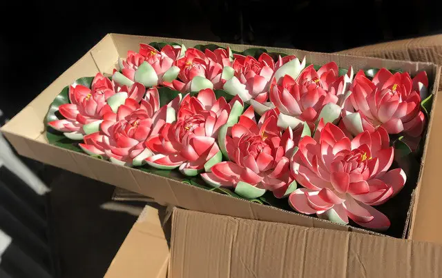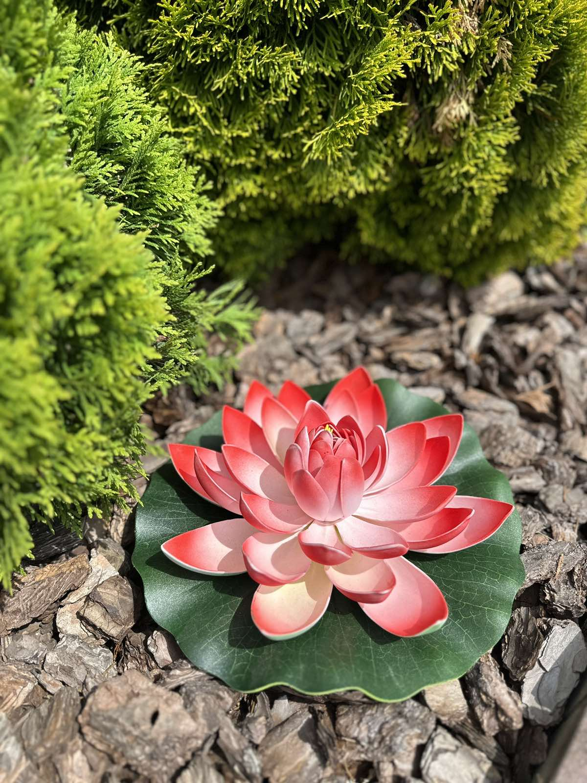 Декоративні лілії виготовлені з пластику високої якості. Вони майстерно зроблені та мають ефектний та гарний вигляд, ніби живі квіти. Фарба згодом не втрачає яскравості та насиченості кольору від постійного перебування у воді, впливу сонячних променів і зміни температур.