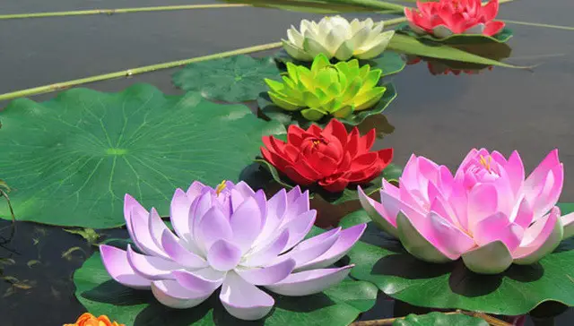 Декоративні лілії виготовлені з пластику високої якості. Вони майстерно зроблені та мають ефектний та гарний вигляд, ніби живі квіти. Фарба згодом не втрачає яскравості та насиченості кольору від постійного перебування у воді, впливу сонячних променів і зміни температур.
