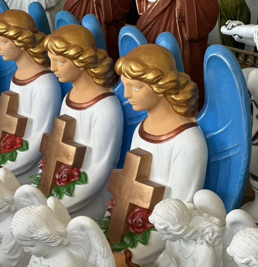 "Ангел великий з хрестом та трояндами " h - 83 см, кольоровий