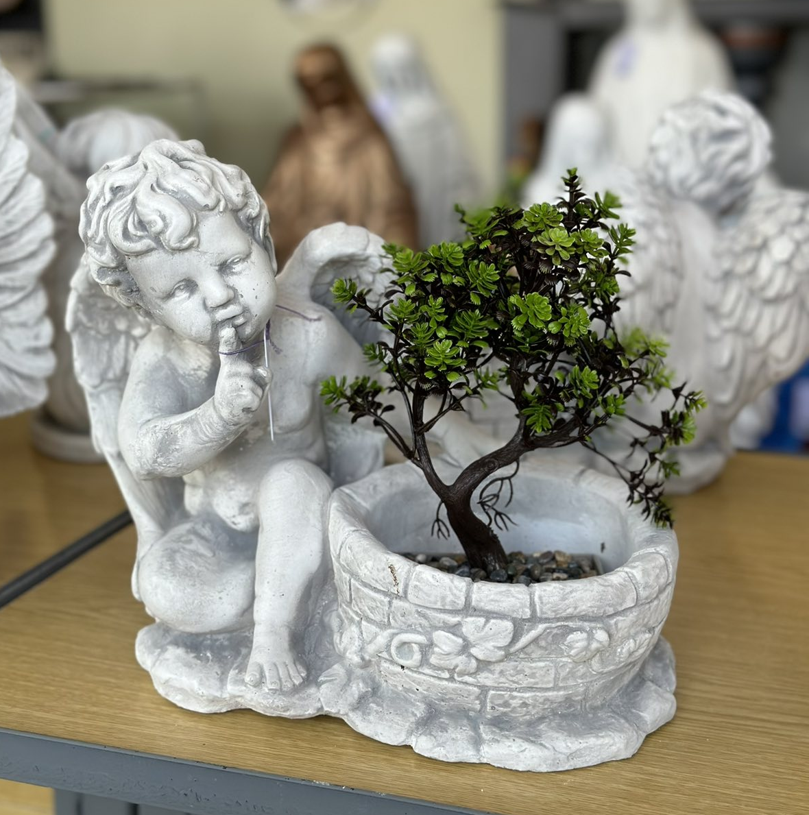 Ангел з відерцем - виготовлений з білого бетону високого класу, стійкого до погодних умов.