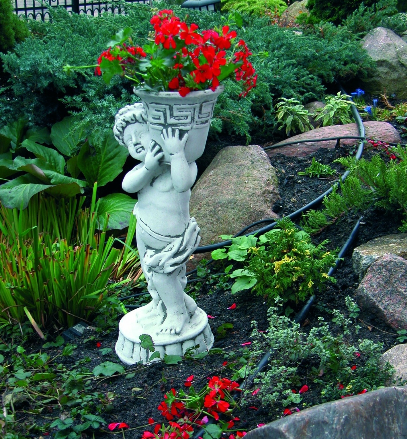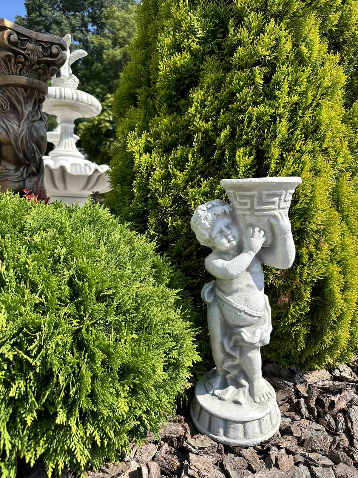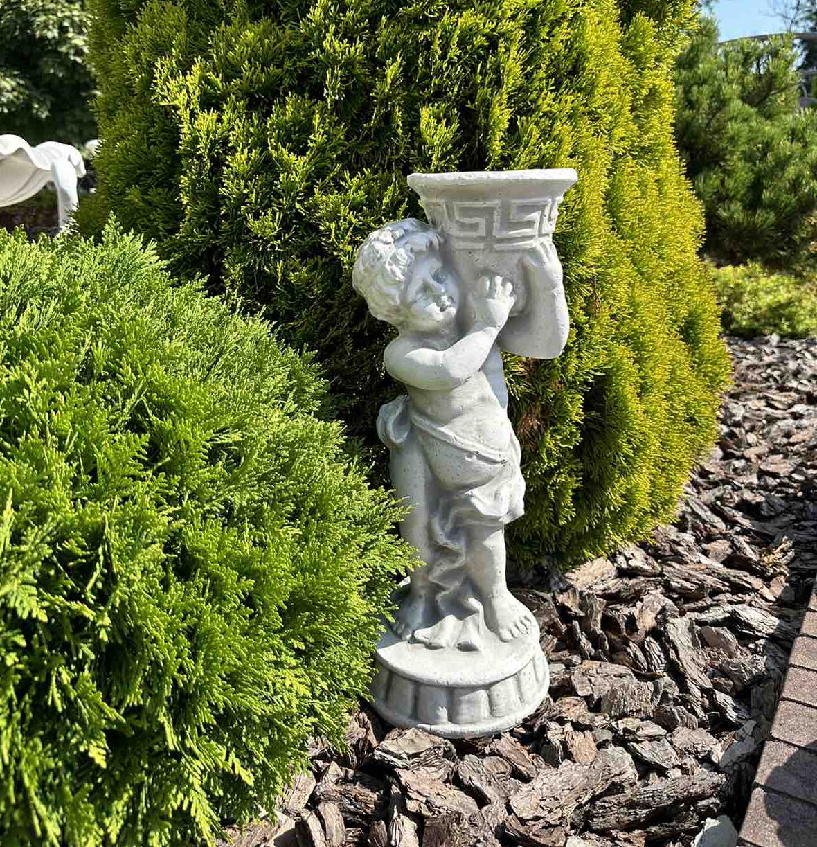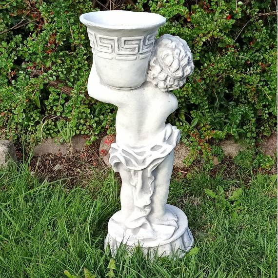 Ця класична фігурка хлопчика, що тримає грецьку вазу, допоможе фантастично відобразити вашу квіткову композицію і буде красиво виглядати біля вхідних воріт або входу в будинок. Фігура виготовлена з білого бетону високого класу, стійкого до будь-яких погодних умов (дощ, сонце, мороз). У всіх наших горщиках є дренажні отвори.