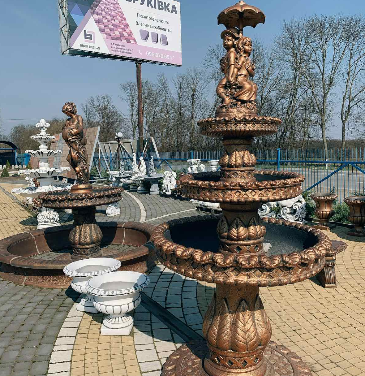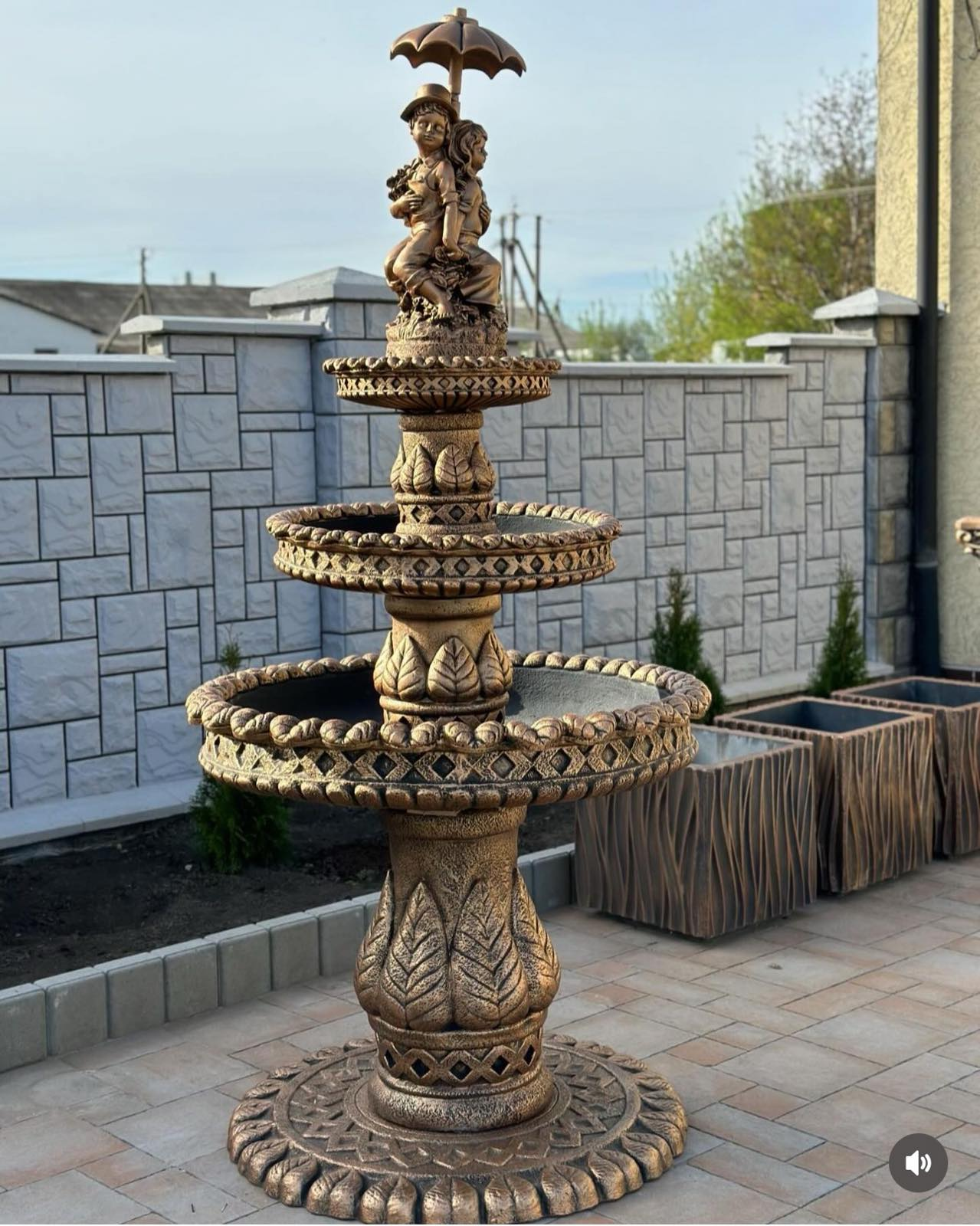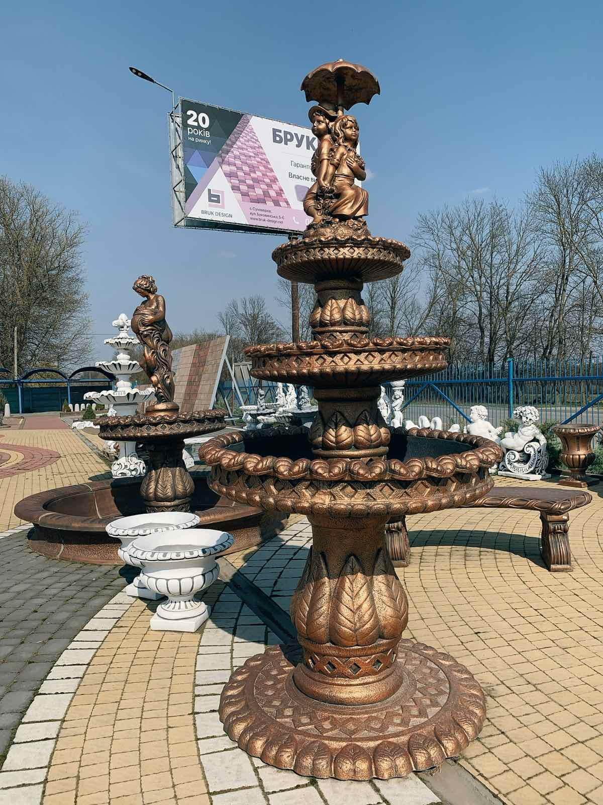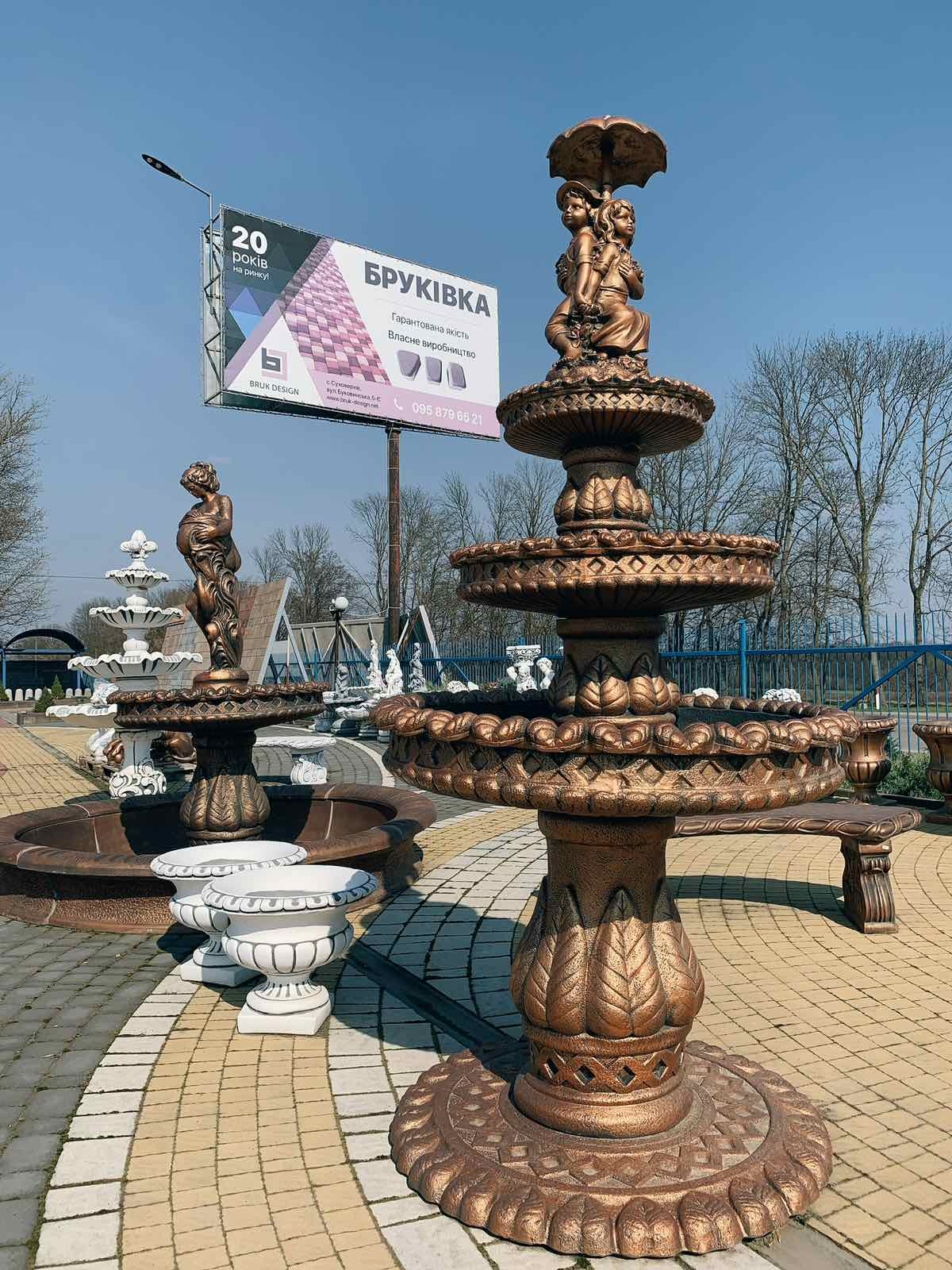 - всі комплектуючі до фонтану (ніжка, чаша, підставки, декор, якщо він входить до товару) від виробника, повністю пристосовані для самостійного монтажу;
