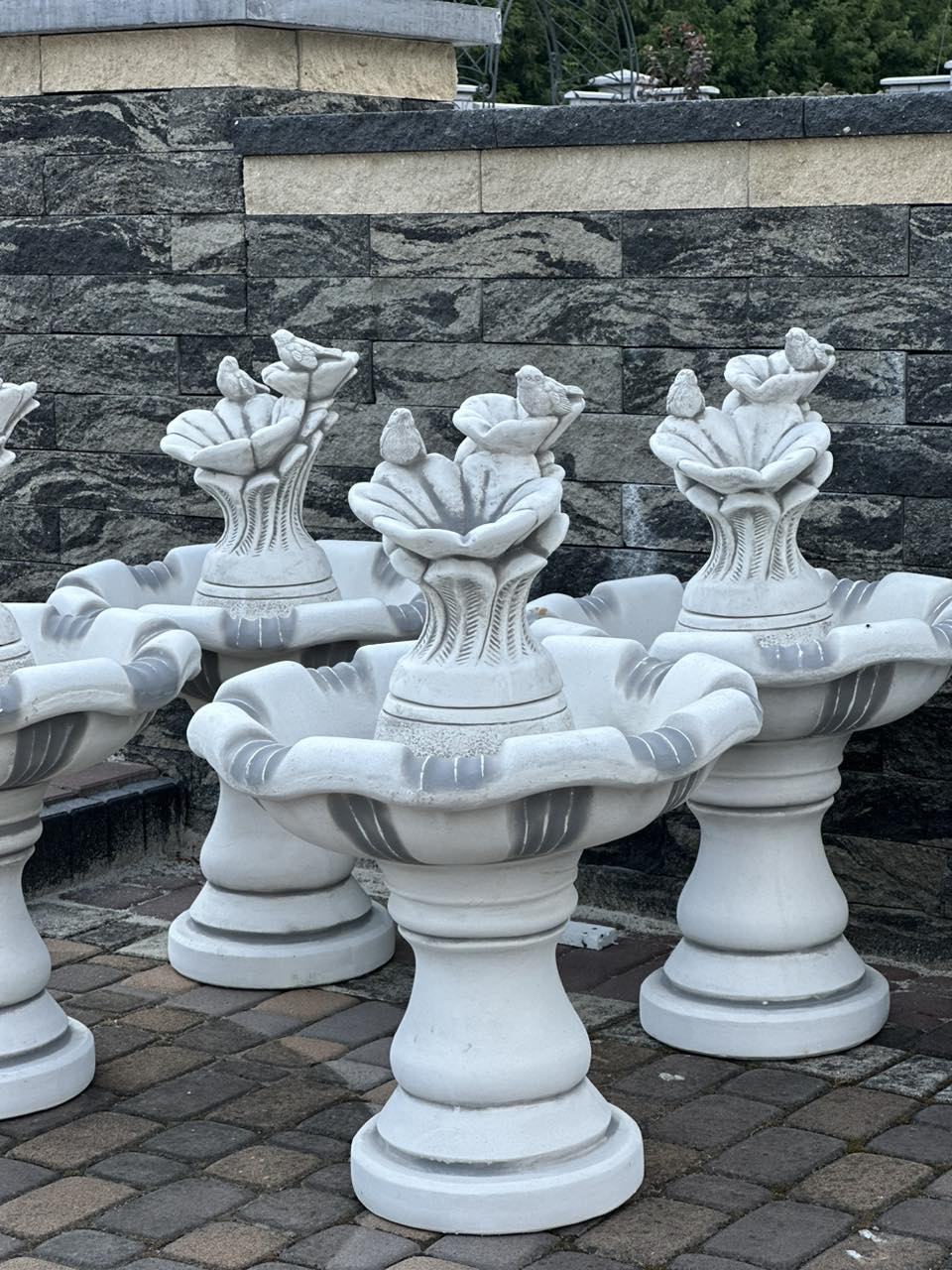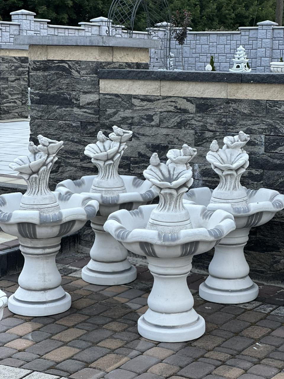 - всі комплектуючі до фонтану (ніжка, чаша, підставки, декор, якщо він входить до товару) від виробника, повністю пристосовані для самостійного монтажу;
