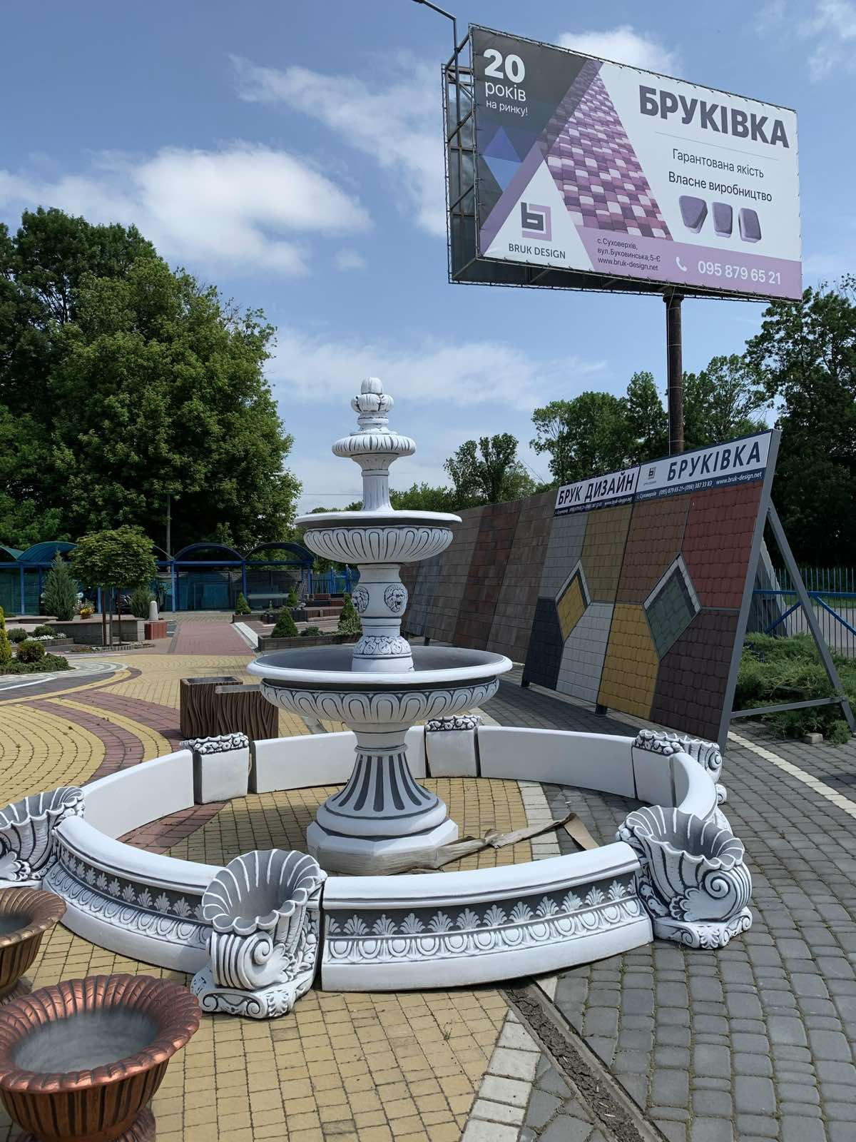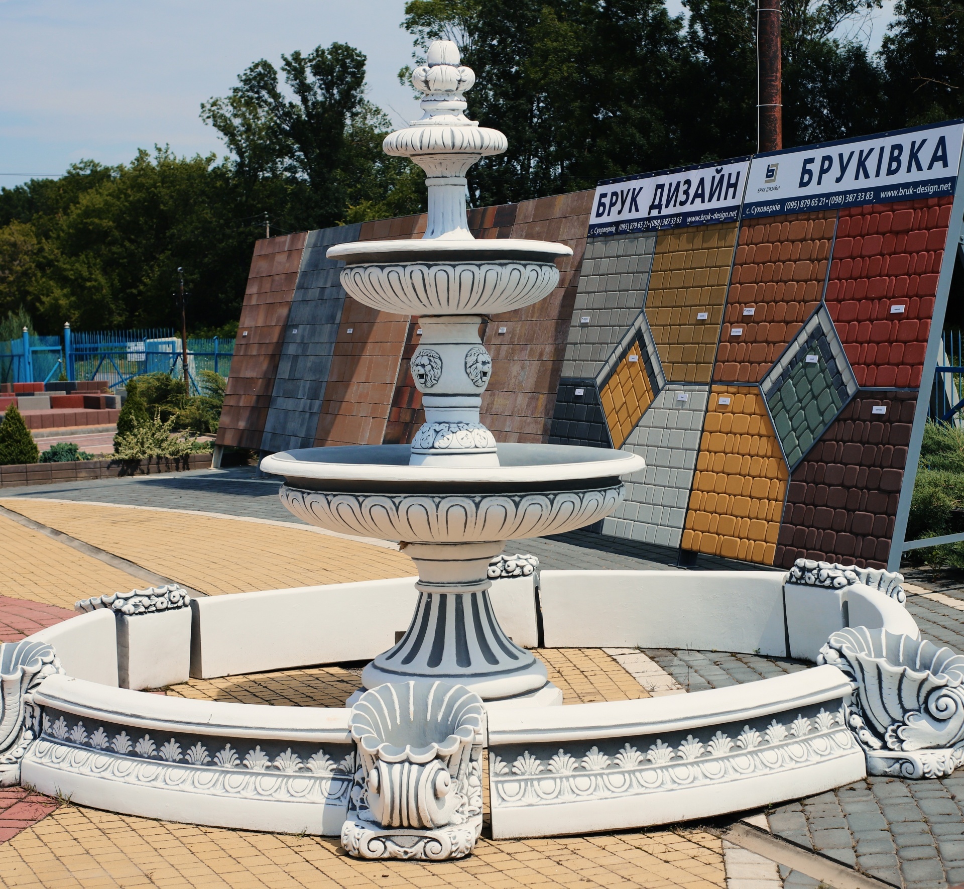 - всі комплектуючі до фонтану (ніжка, чаша, підставки, декор, якщо він входить до товару) від виробника, повністю пристосовані для самостійного монтажу;