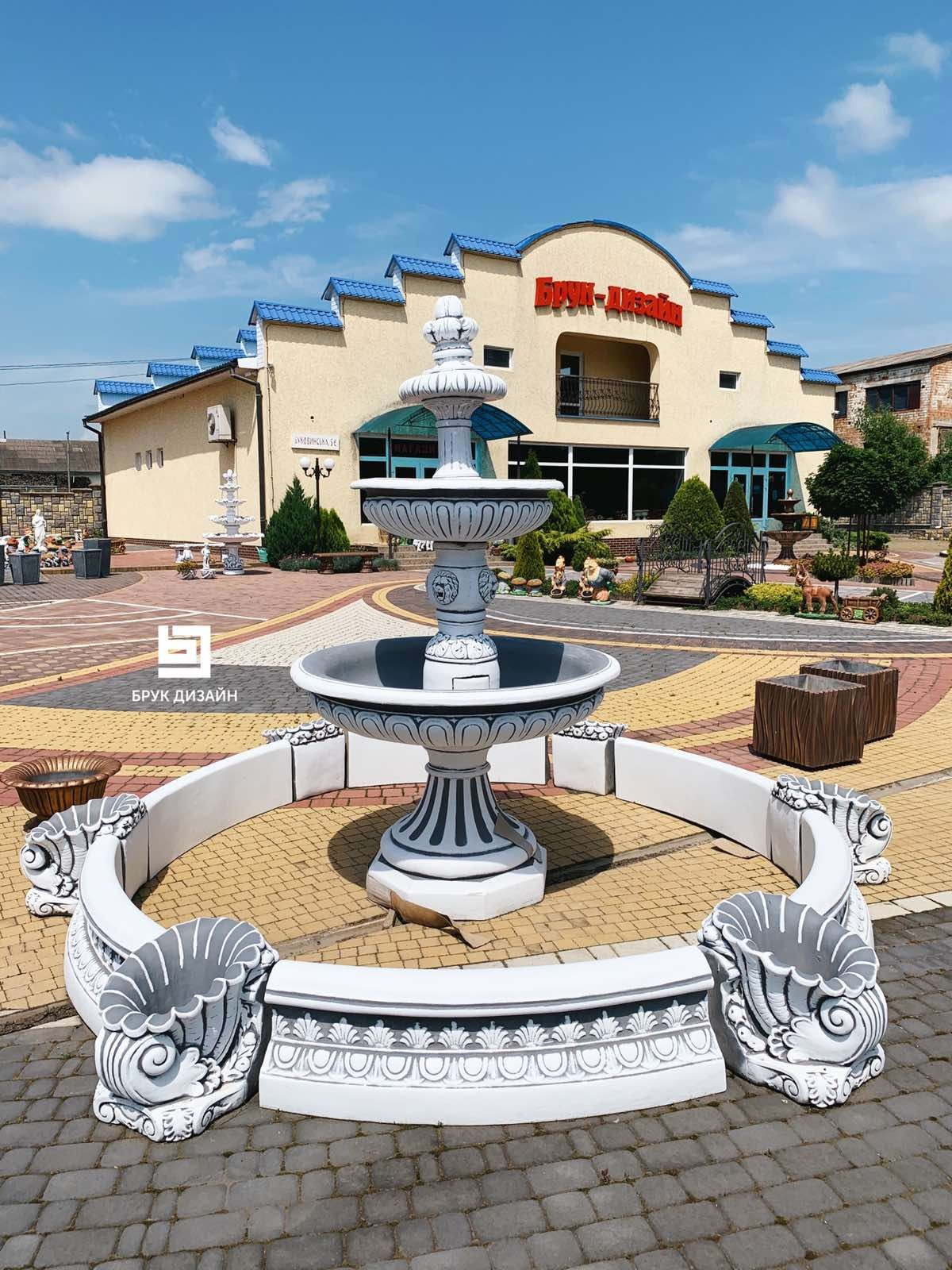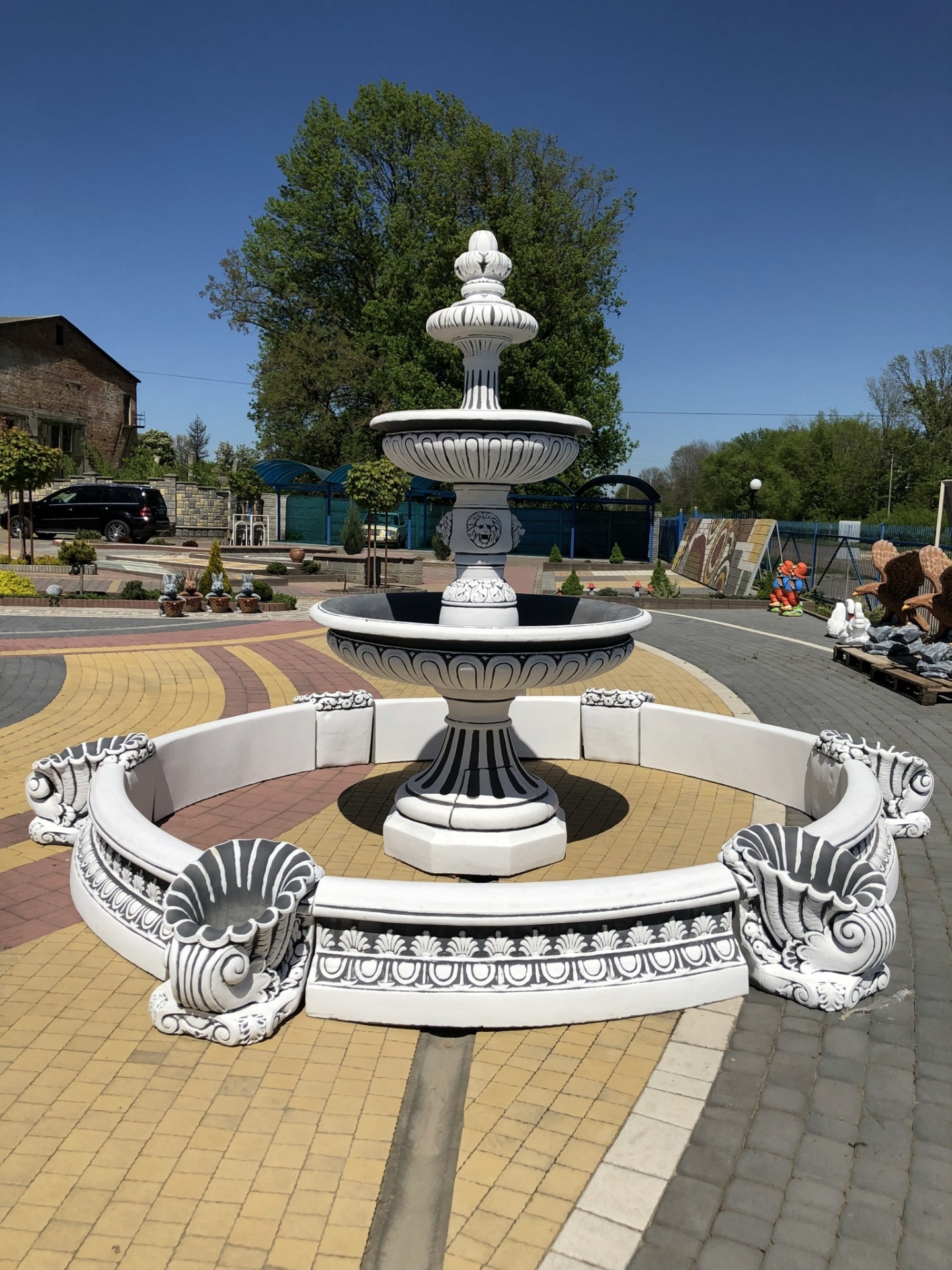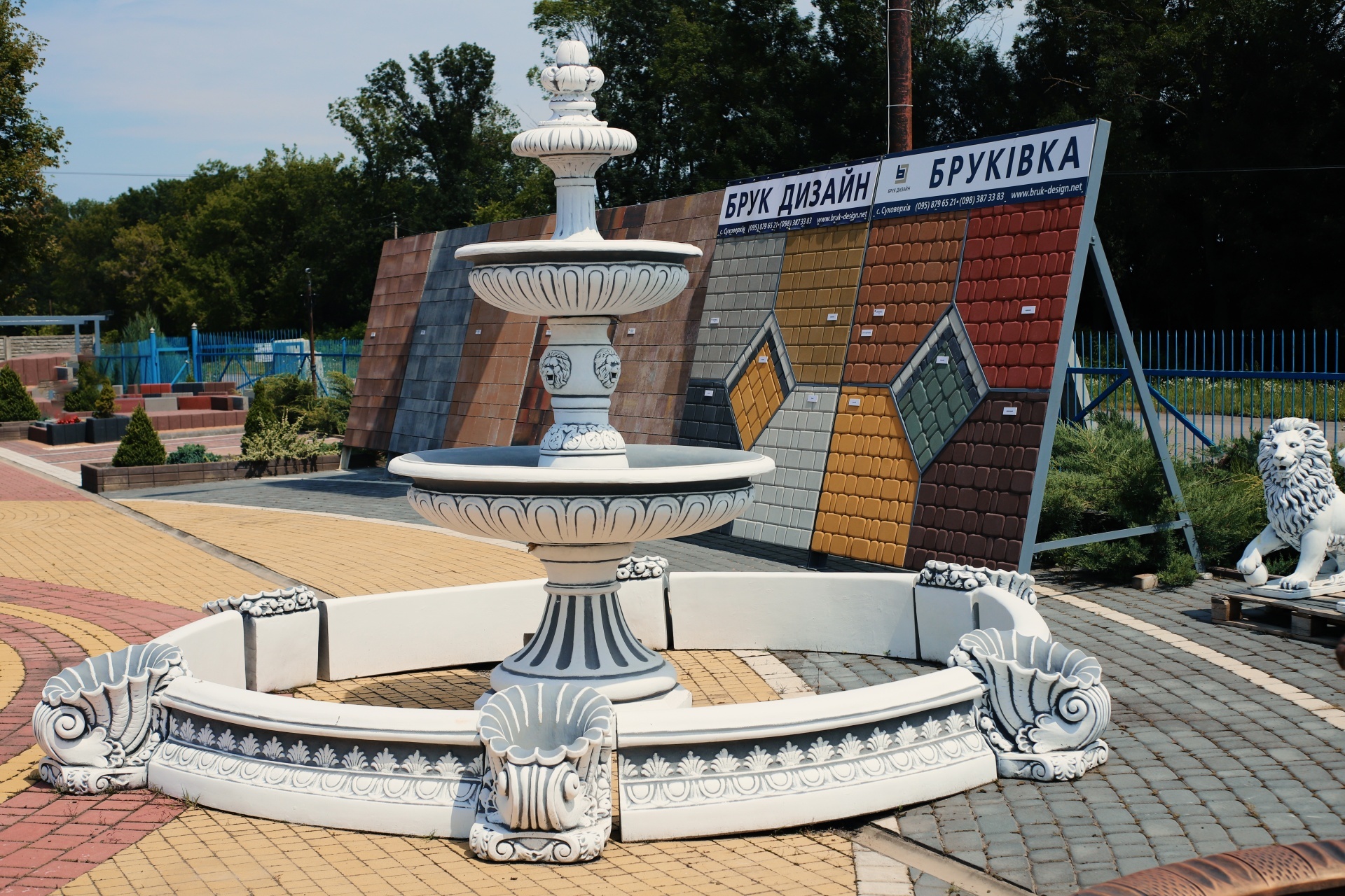 Фонтан виконаний із архітектурного бетону, метод виробництва, який поєднує в собі натуральну сировину та новітні технології.