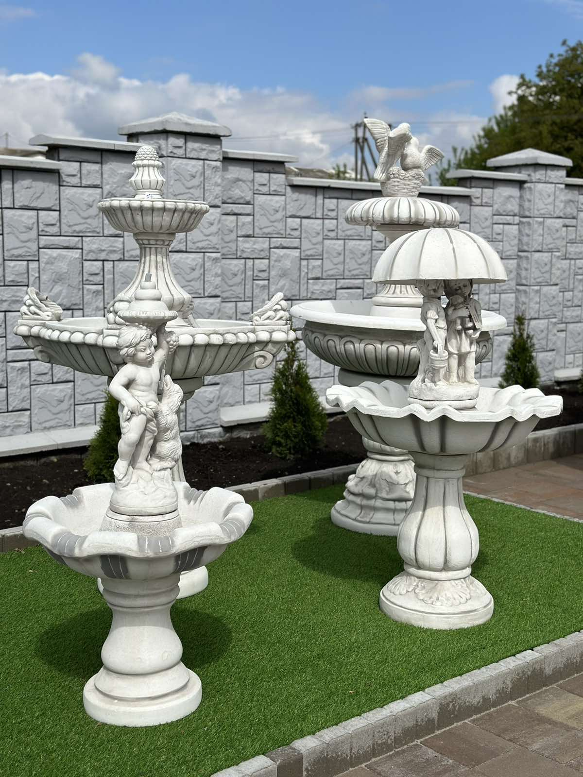 - всі комплектуючі до фонтану (ніжка, чаша, підставки, декор, якщо він входить до товару) від виробника, повністю пристосовані для самостійного монтажу;