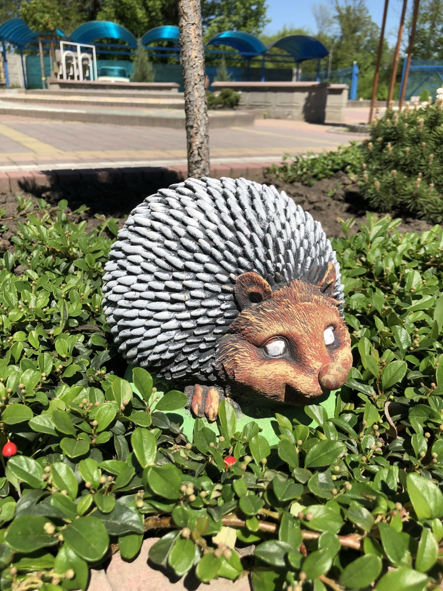 Улюблений і обожнюваний дітьми їжачок! Фігурка виготовлена з високоякісного бетону , стійкого до будь-яких погодних умов (дощ, сонце, мороз). Оригінальна прикраса для домашнього саду, громадських місць, парків, готелів