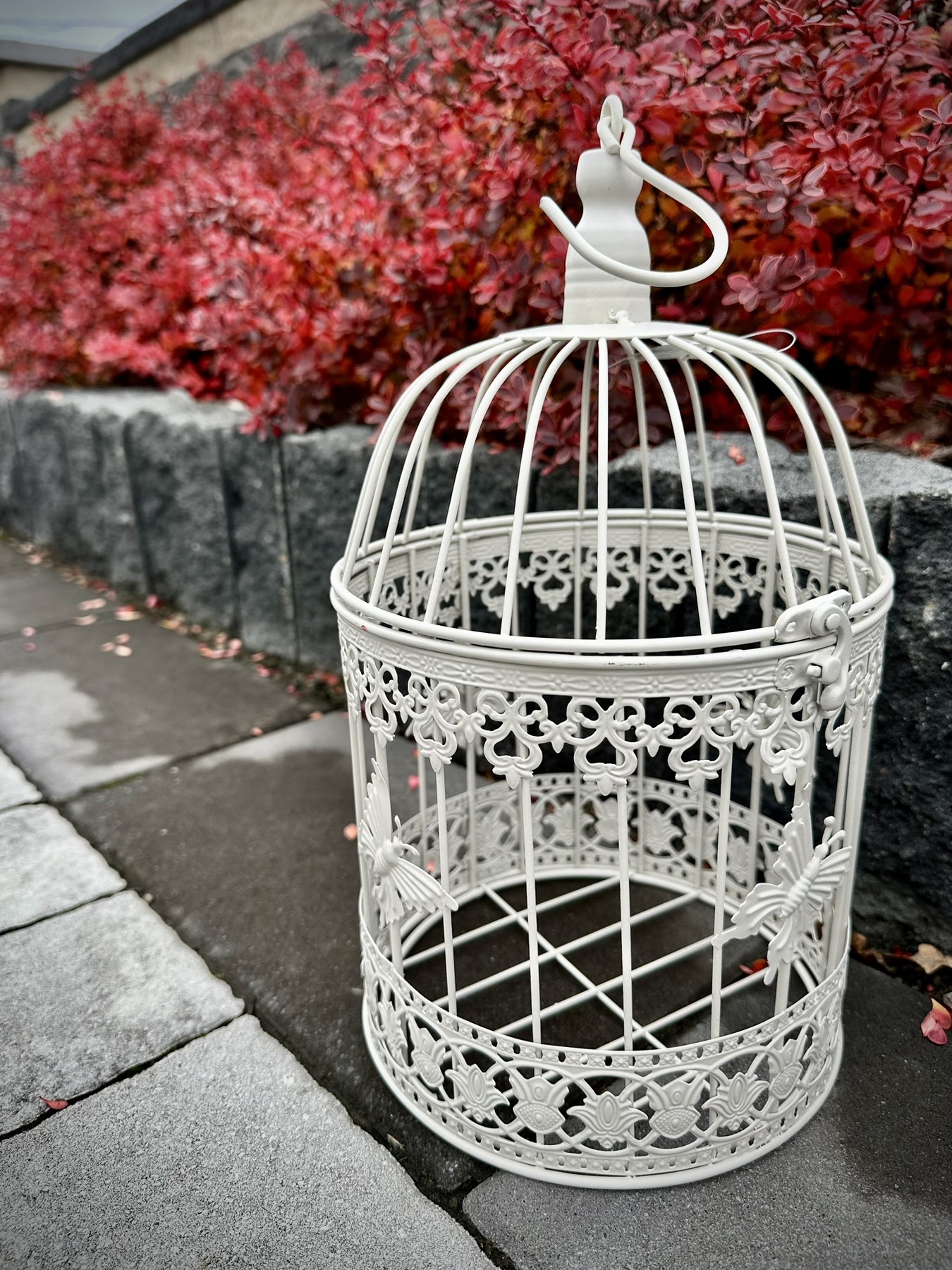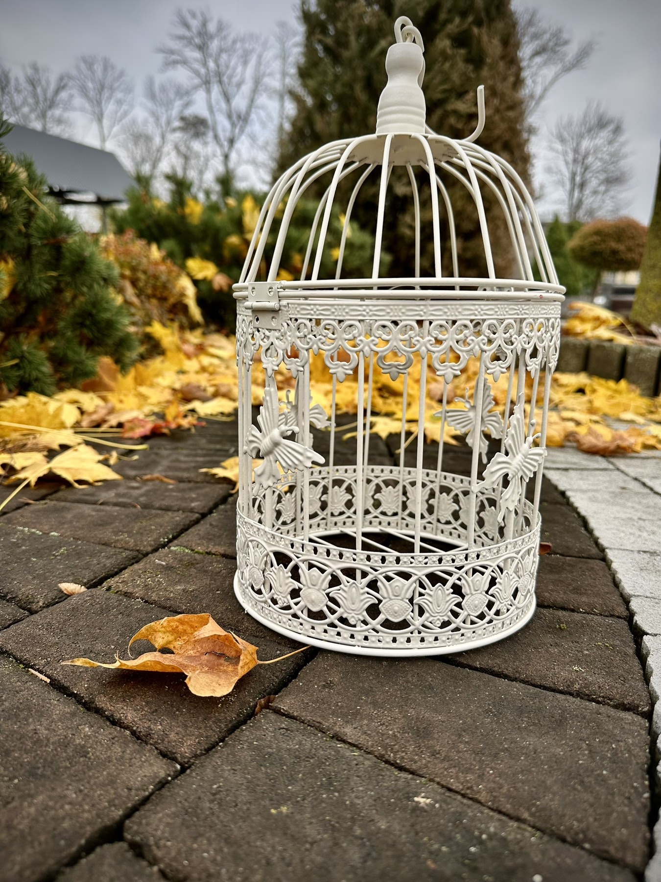 Вінтажна декоративна клітка білого кольору зметеликами. Ідеально підійде для квіткових композицій в саду, свічок або фотозони. Легка, витончена та атмосферна додасть затишку вашому дому