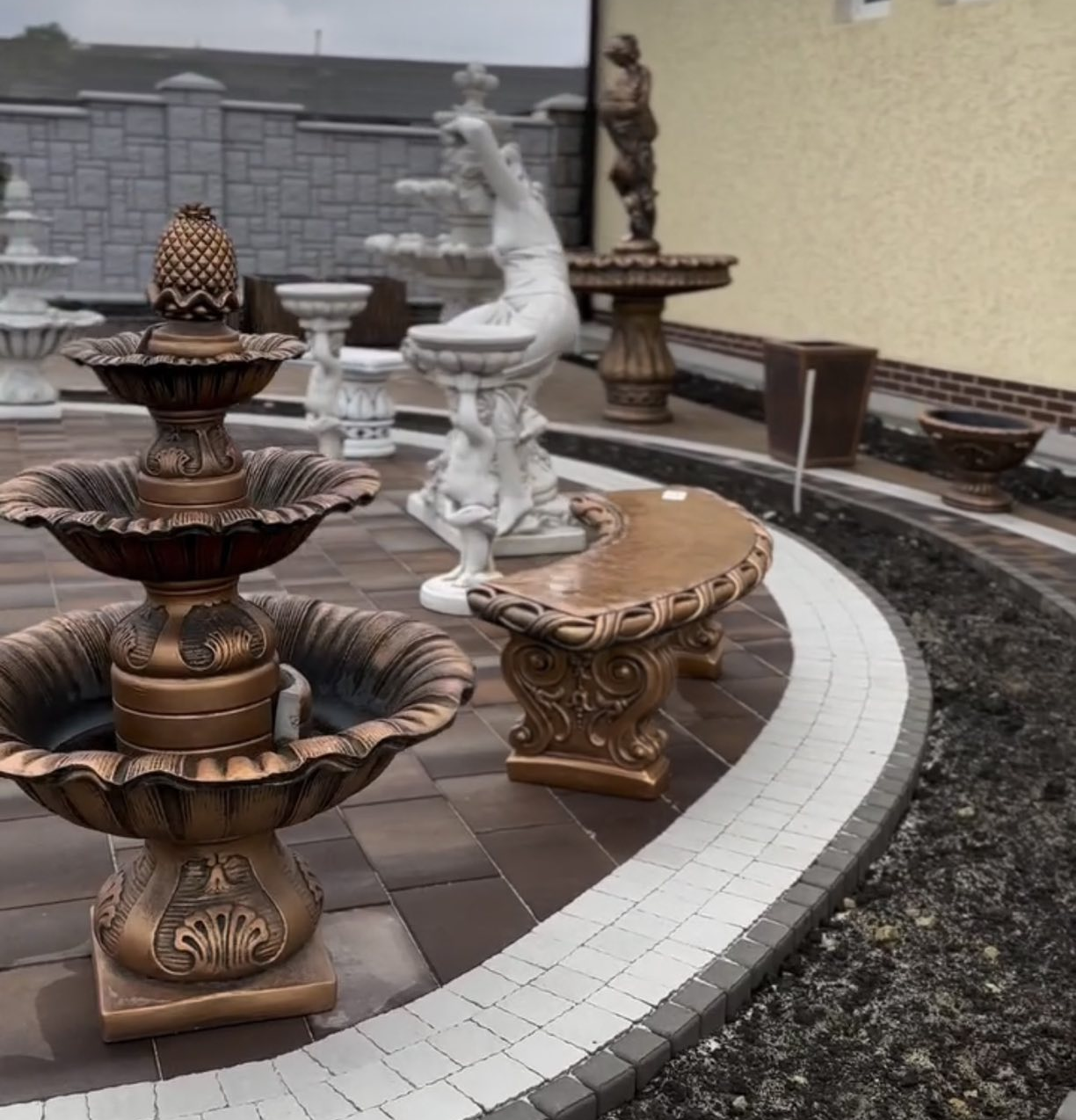 - всі комплектуючі до фонтану (ніжка, чаша, підставки, декор, якщо він входить до товару) від виробника, повністю пристосовані для самостійного монтажу;
