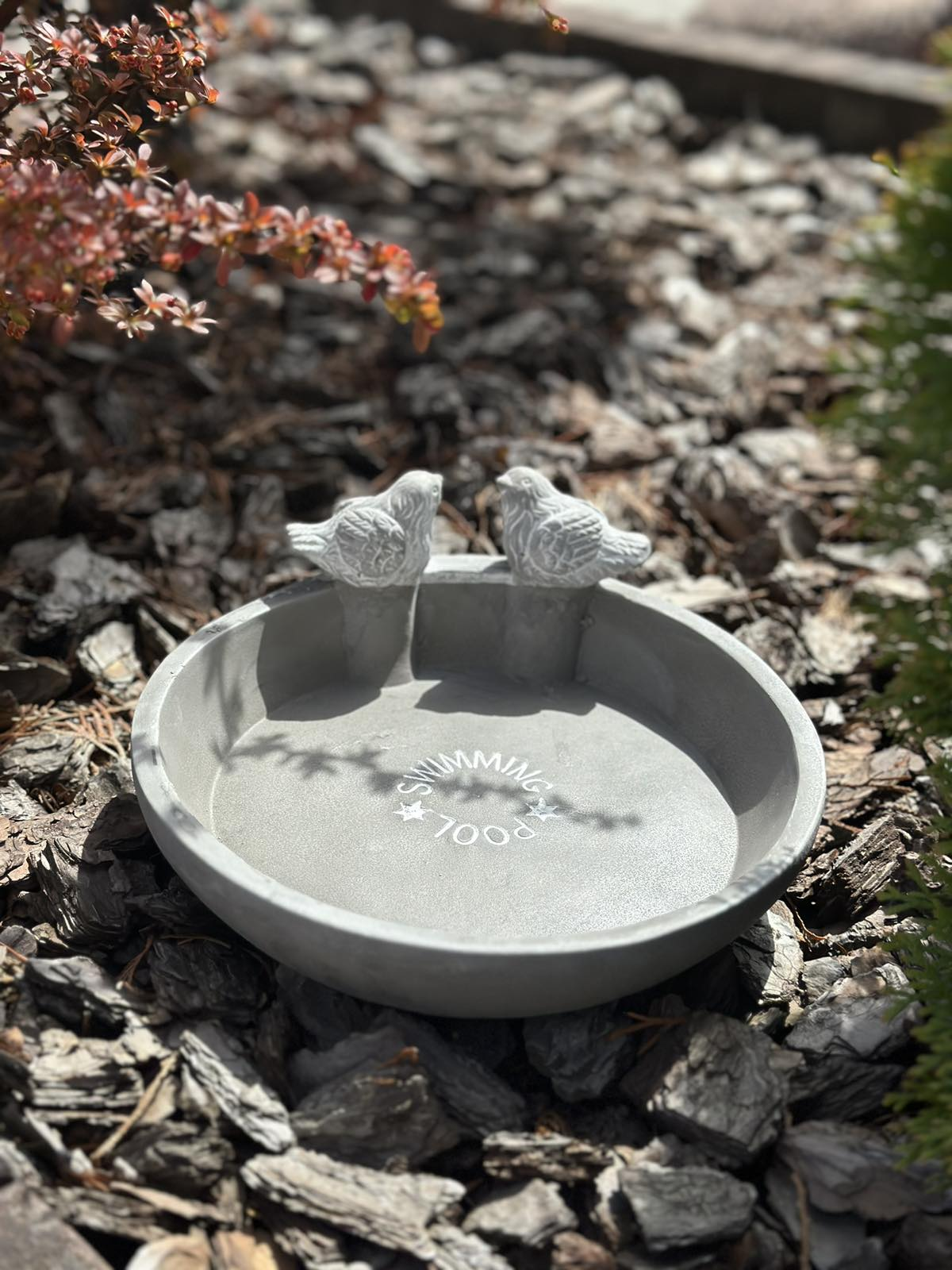 Маленька чарівна пташина поїлка з декораціями. Це може бути гарною прикрасою домашнього саду, громадських місць, парків і готелів.