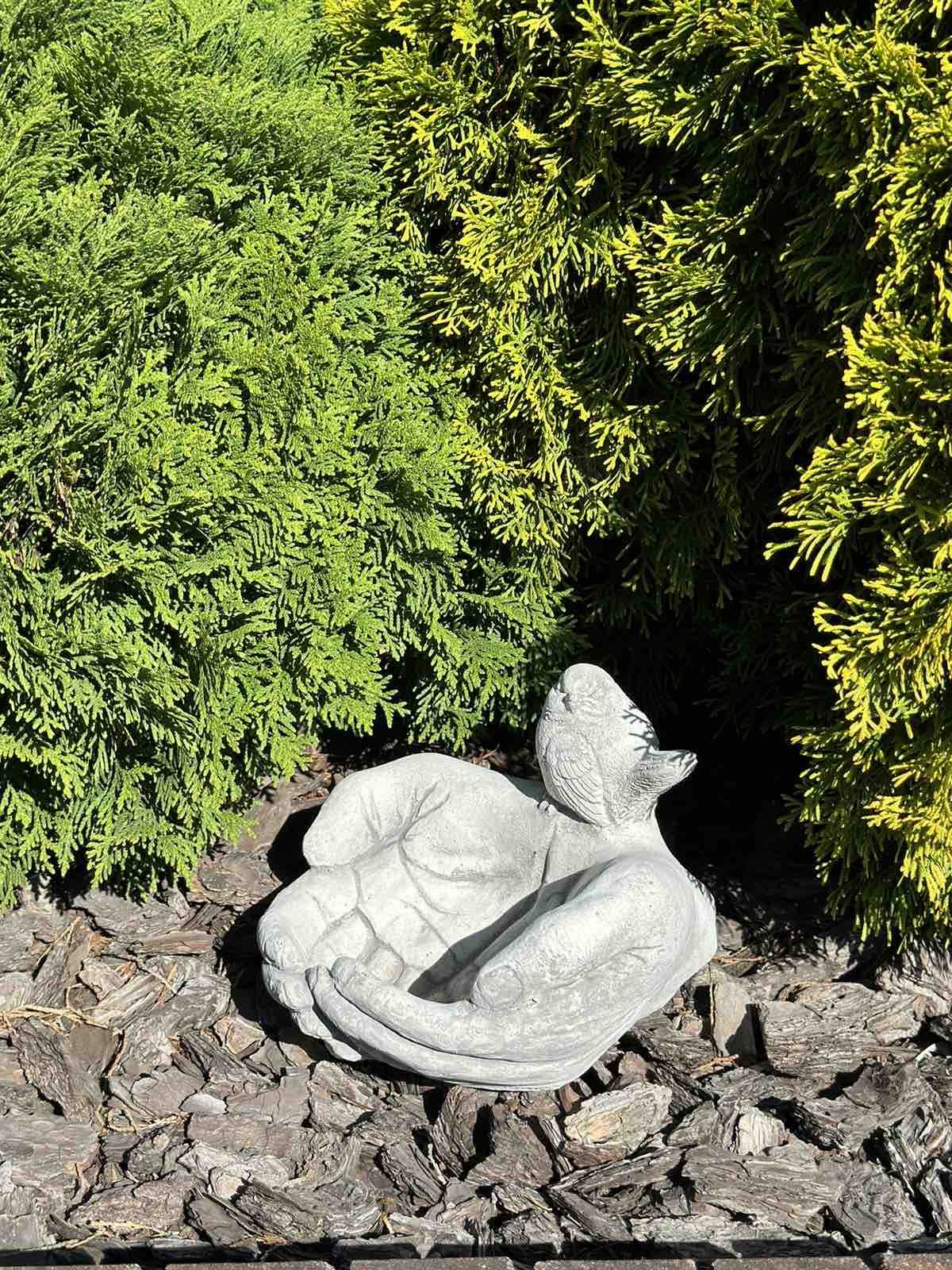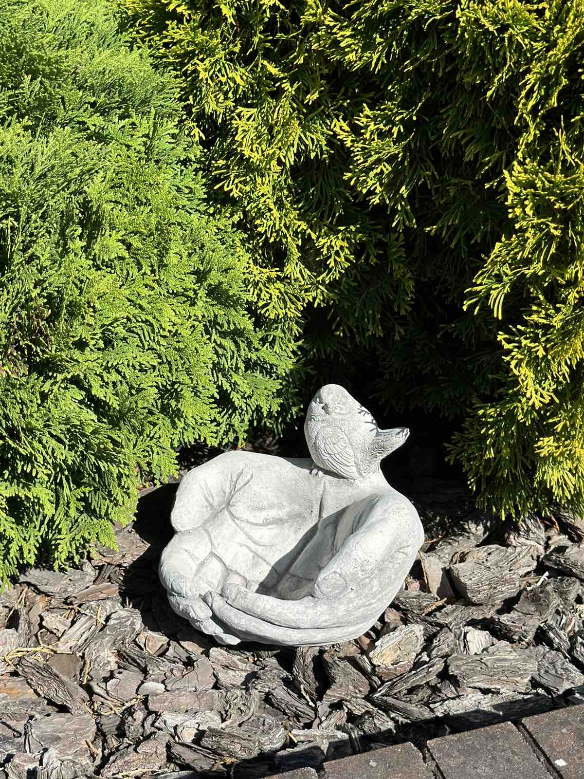 Красива поїлка виготовлена з високоякісного білого бетону, стійкого до будь-яких погодних умов (дощ, сонце, мороз).