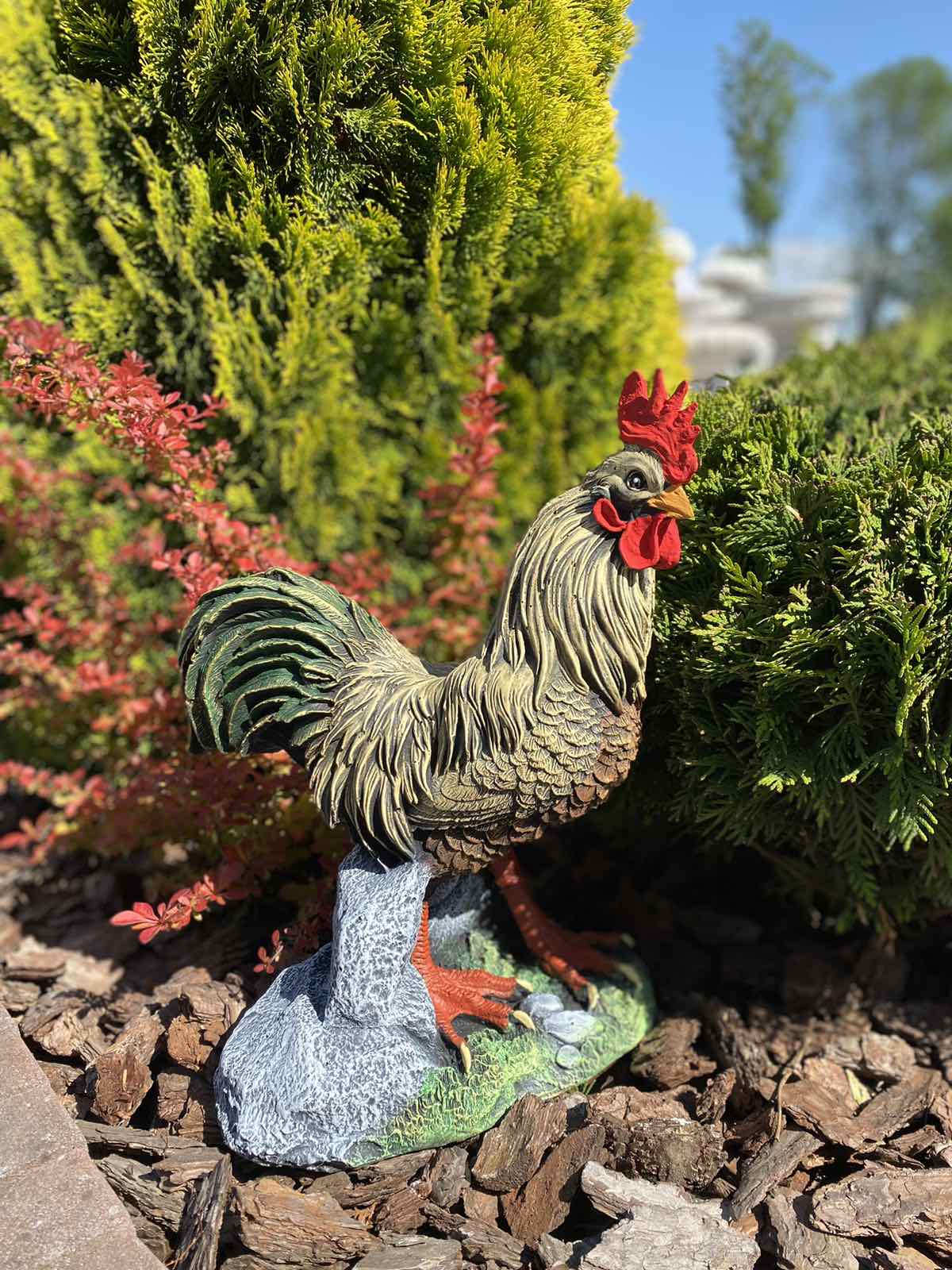 Красень півень в камінь перетворився! Фігура виготовлена з високоякісного бетону , стійкого до будь-яких погодних умов (дощ, сонце, мороз). Оригінальна прикраса для домашнього саду, громадських місць, парків, готелів .