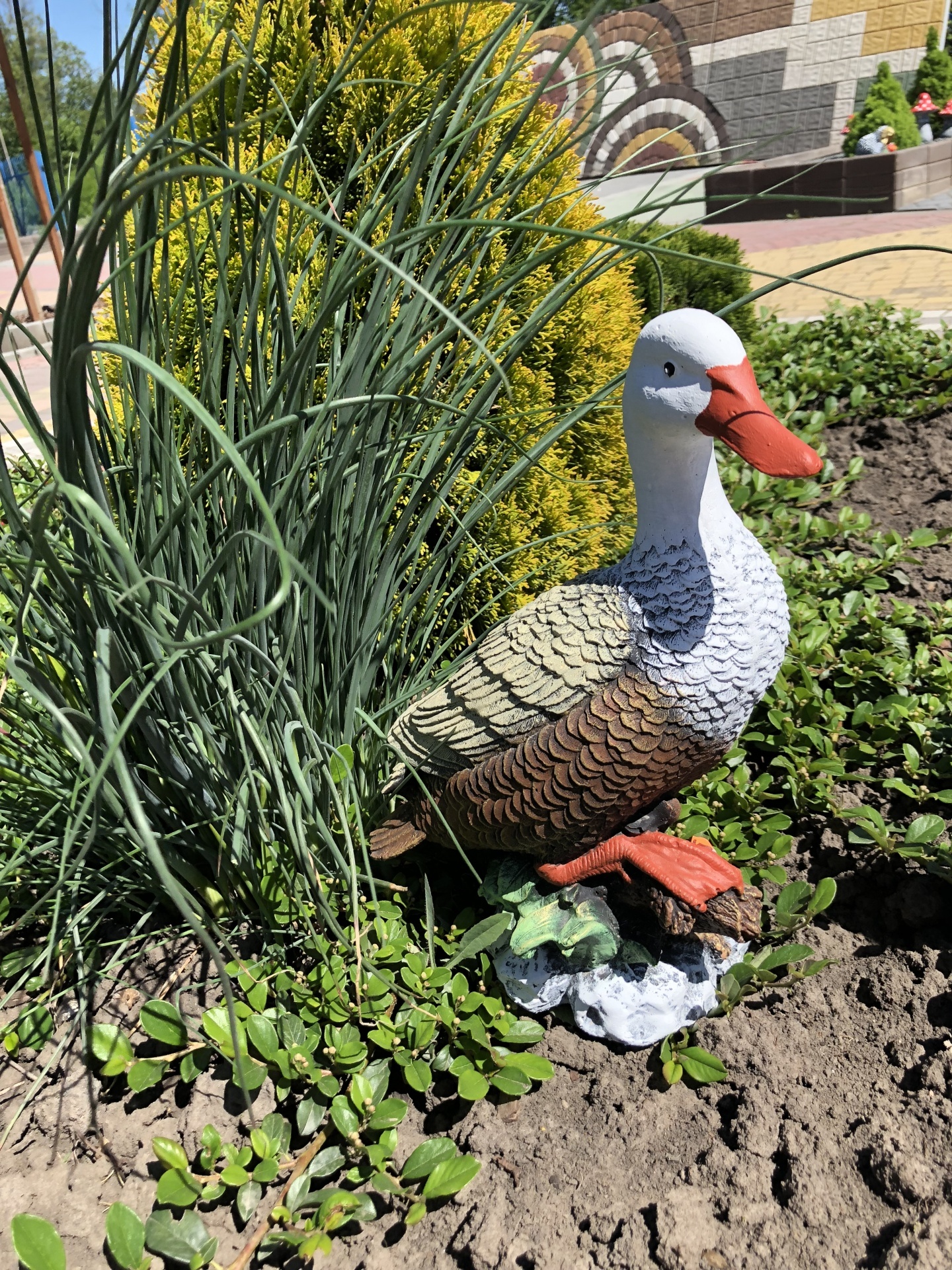 Фігурка ч гусочки , яка чудово прикрасить будь-який сад! Скульптура виготовлена з високоякісного бетону , стійкого до складних погодних умов. Оригінальна прикраса для домашнього саду, громадських місць, парків, готелів .