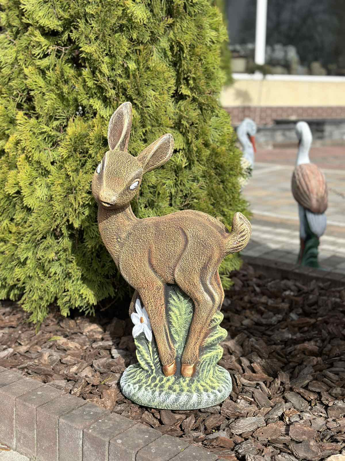 Оленятко - це фігурка , яка точно впишеться в будь-який зелений куточок, тому може стати чудовим подарунком для близької людини. Фігура виготовлена з архітектурного бетону високого класу , стійкого до будь-яких погодних умов (дощ, сонце, мороз).