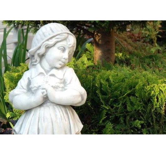 Чудова фігурка дівчинки, що стоїть над прямокутним горщиком, який також може бути прикрасою для обраної квіткової чи рослинної композиції. Фігура та вазон ретельно виготовлені з міцного архітектурного бетону, стійкого до УФ-випромінювання, дощу та морозу.