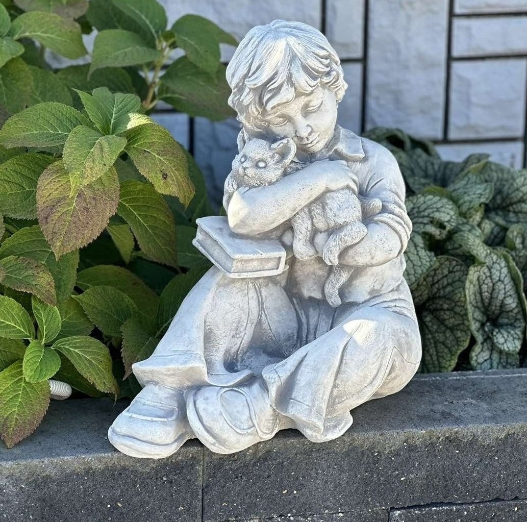 Садова скульптура “Хлопчик з котиком” – це не просто декор, а справжня історія ніжності у вашому саду.