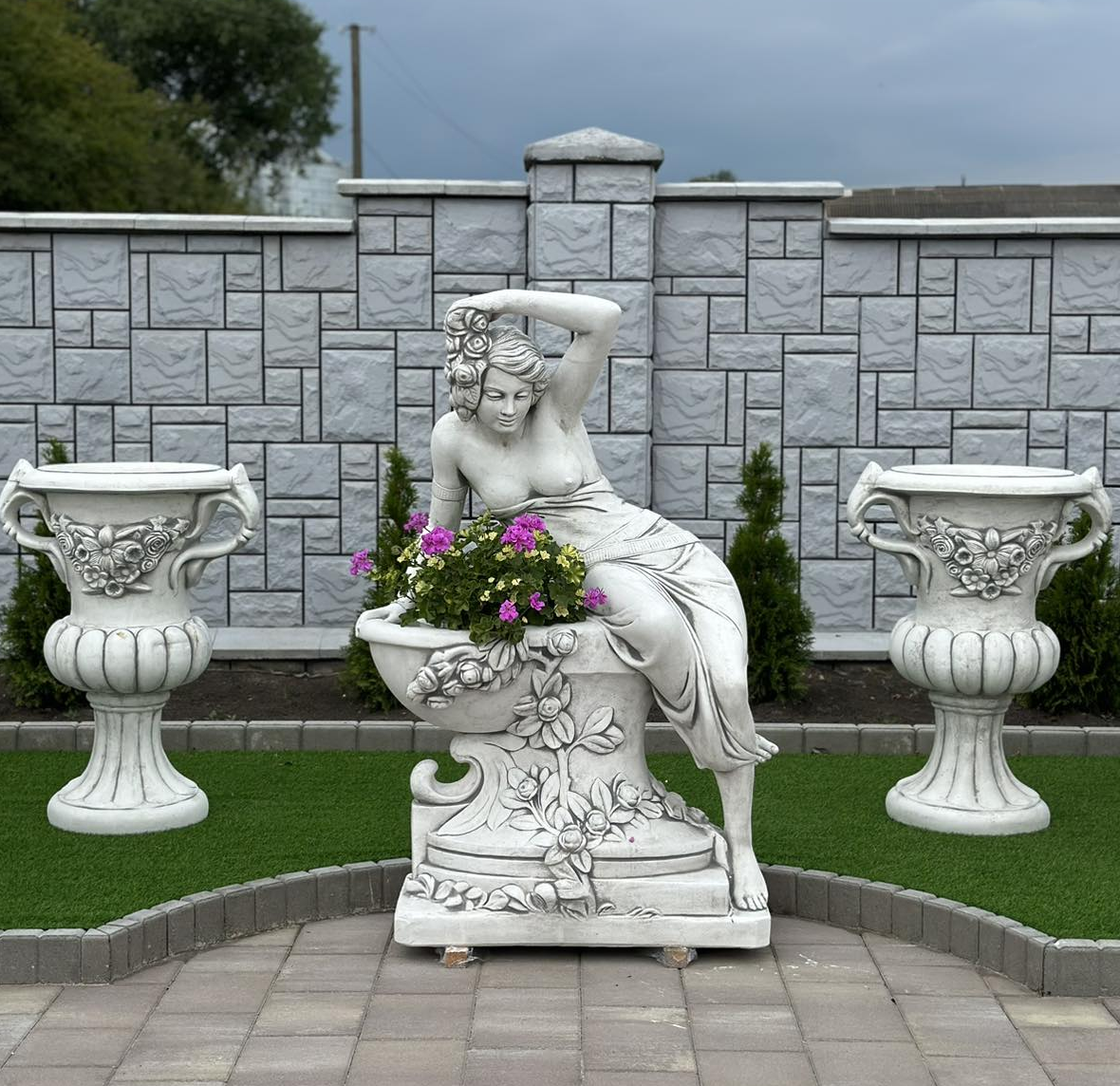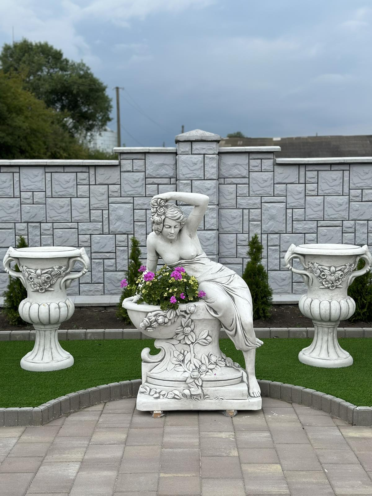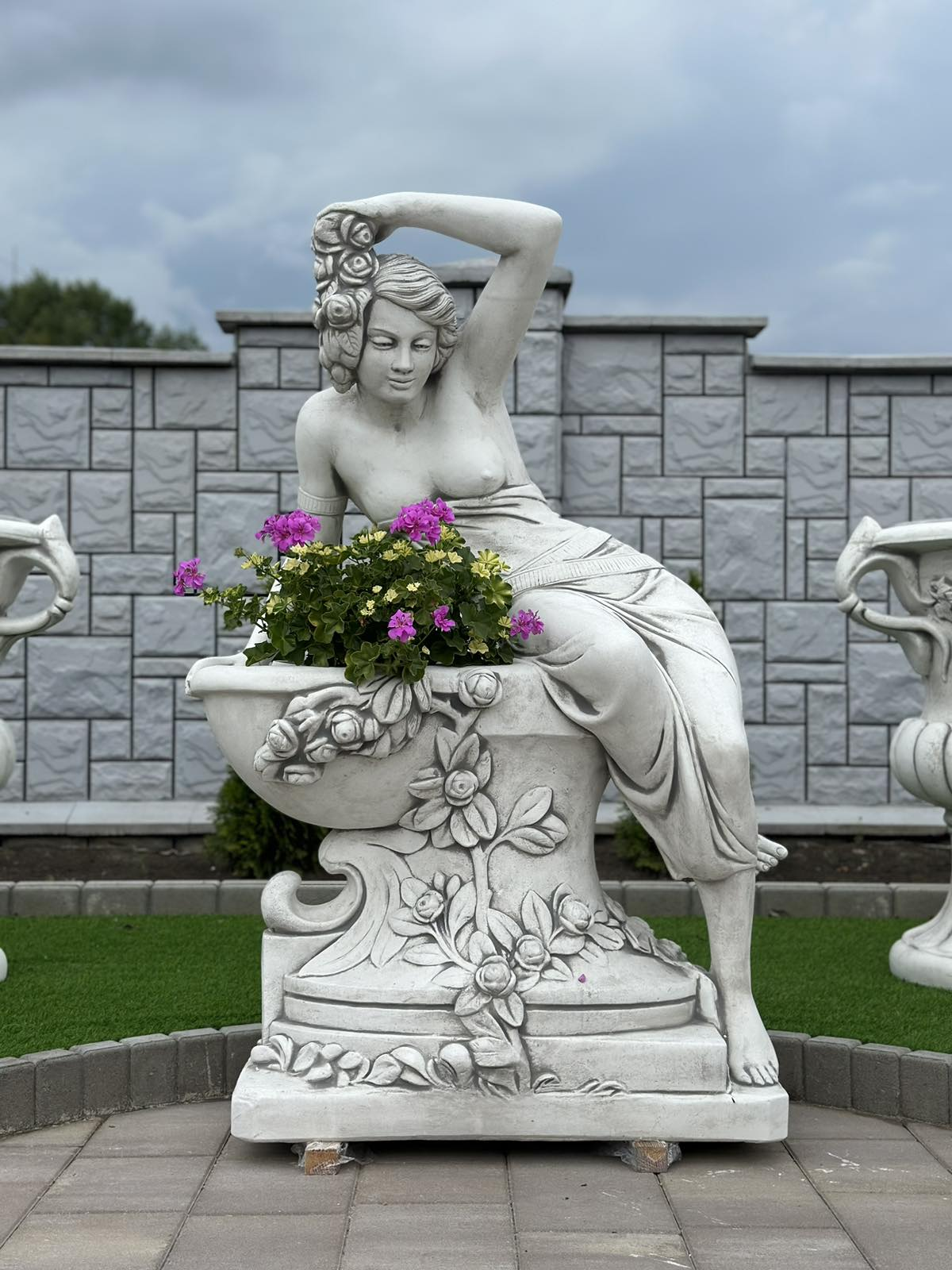 Скульптура «Дівчина-Троянда» -надзвичайно гарнга, вишукана декоративна композиція з архітектурного бетону, що зображає жінку у легкому вбранні, яка сидить біля оздобленої квітами чаші.