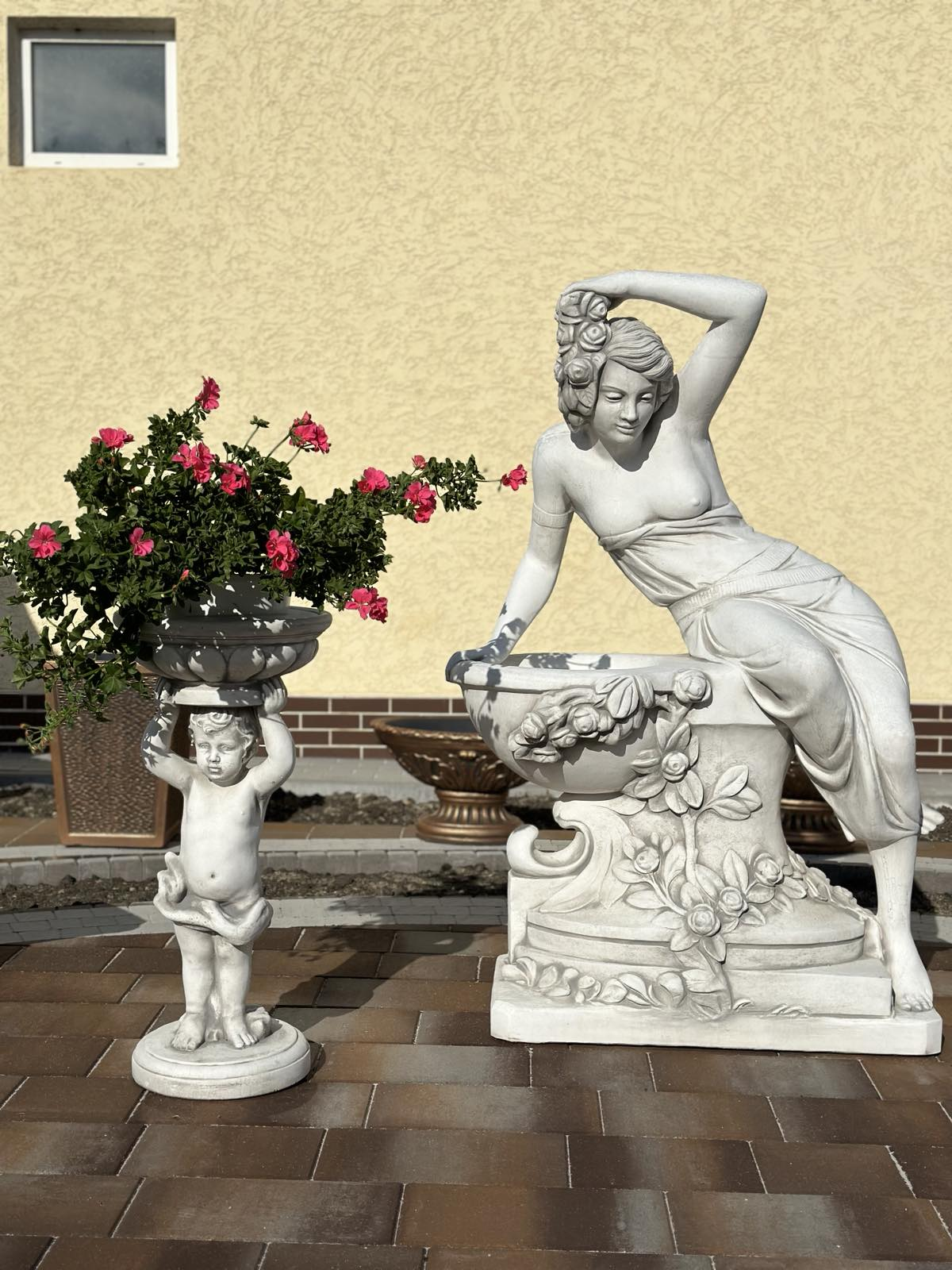 Чаша у підніжжі скульптури може використовуватись як квітковий вазон. Живі або декоративні рослини додадуть композиції ще більшої виразності та гармонії з природою.