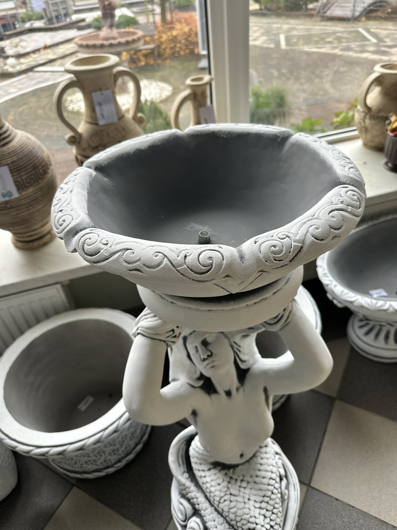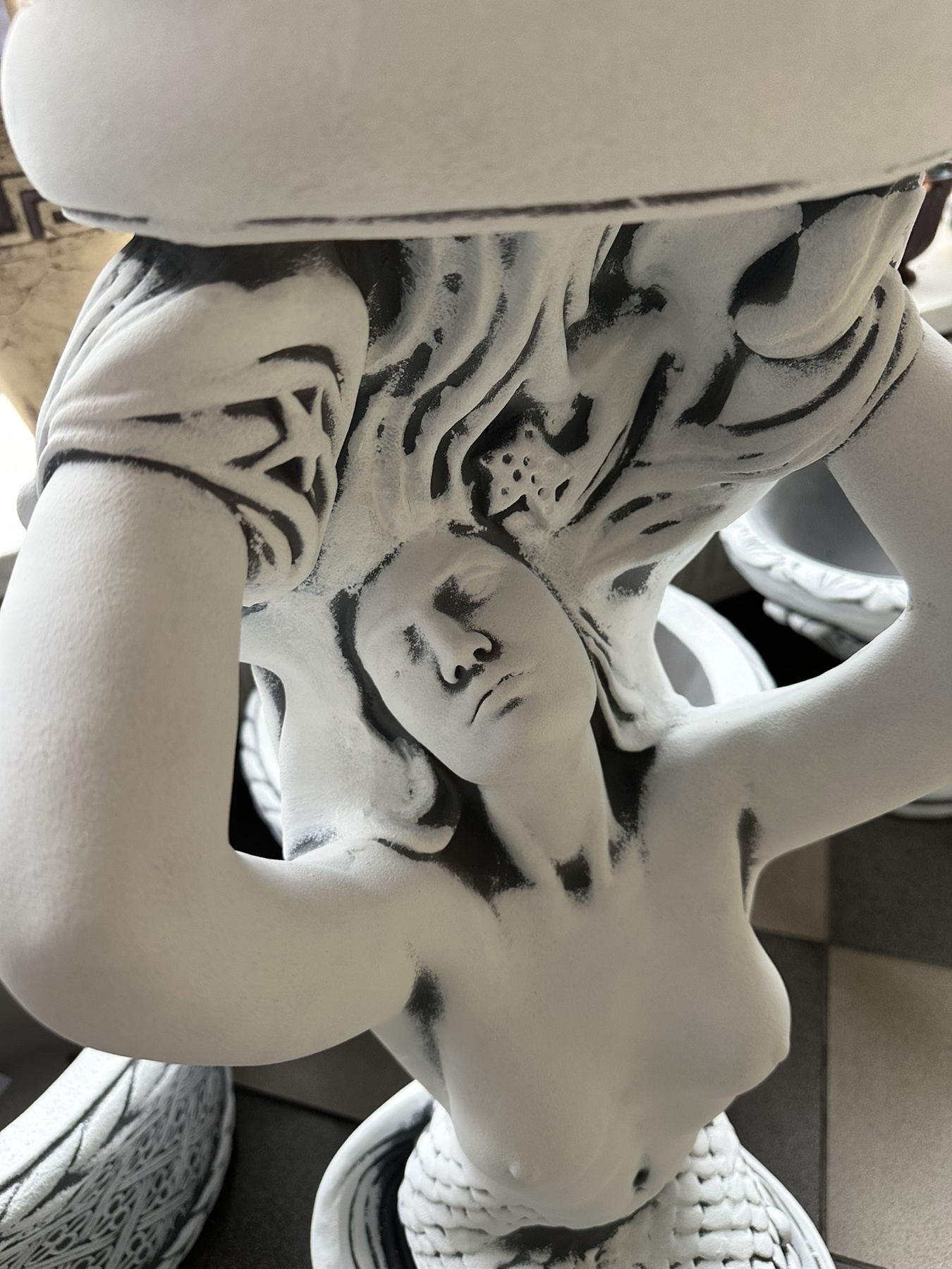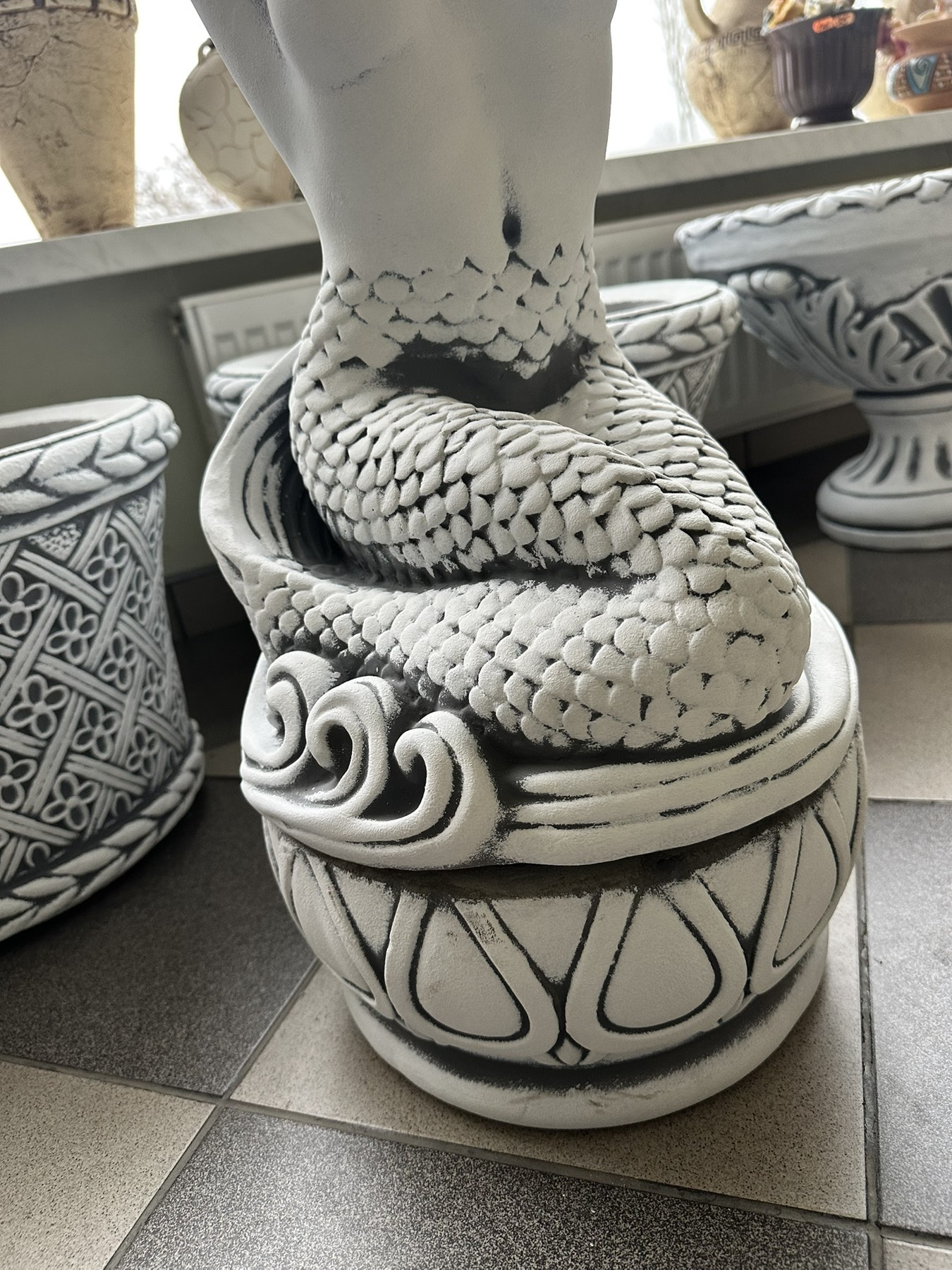 Зовнішній вигляд виробів з архітектурного бетону може незначно відрізнятися від представленого на фотографіях - технічні характеристики виробів надходять від виробників, кожен виріб виготовляється на замовлення і патинується вручну в обраний колір, щоб підкреслити його форми.