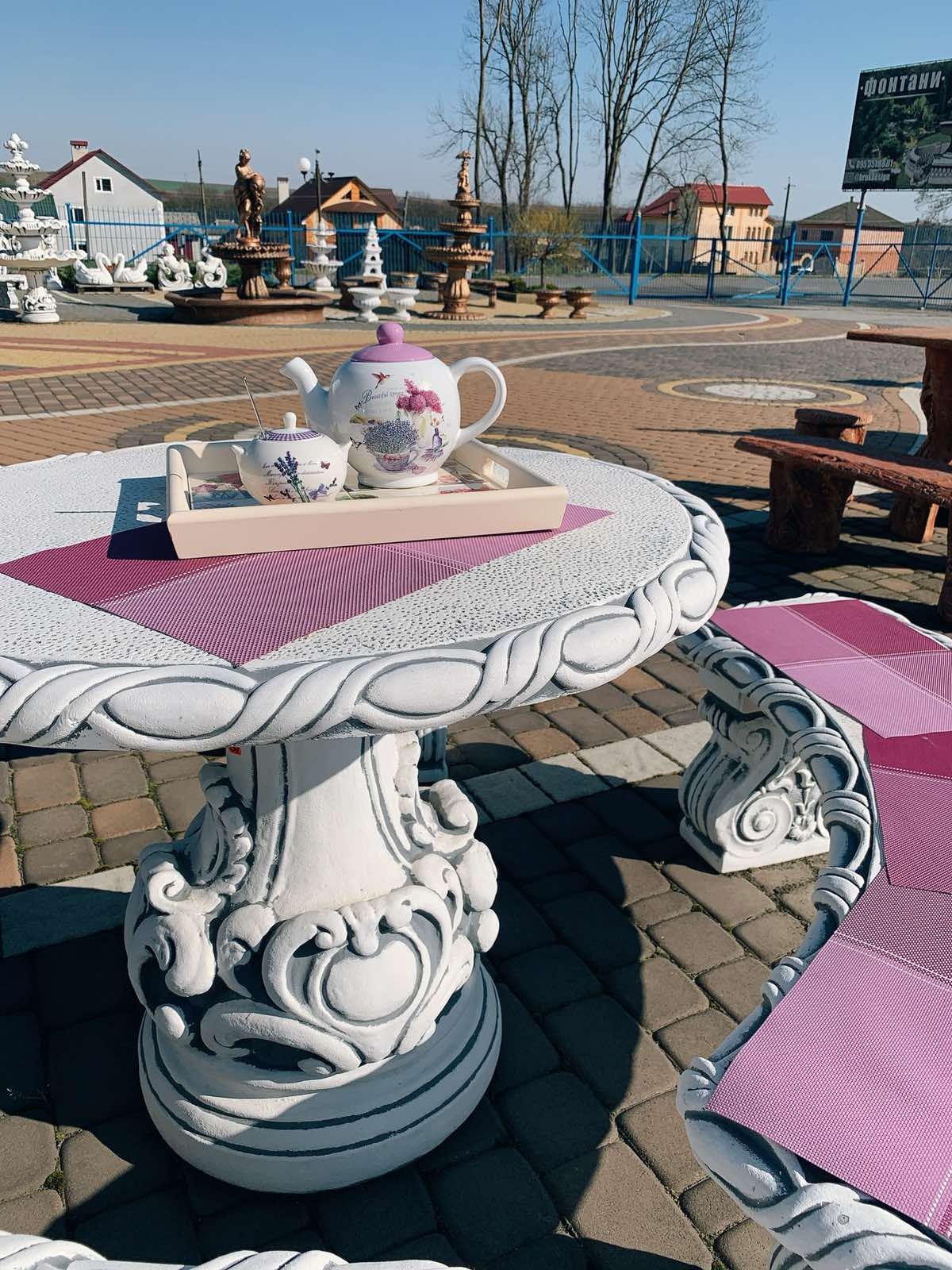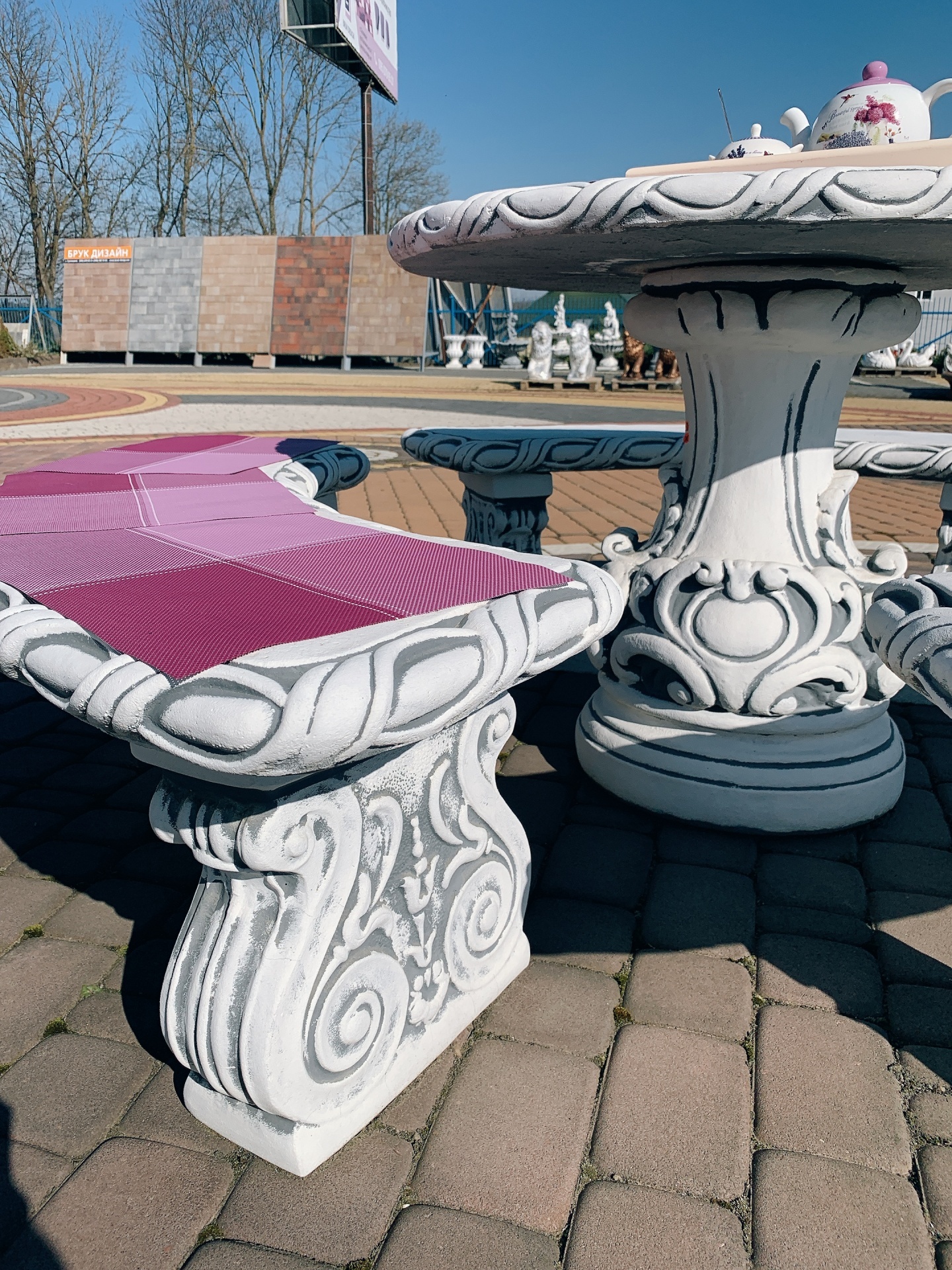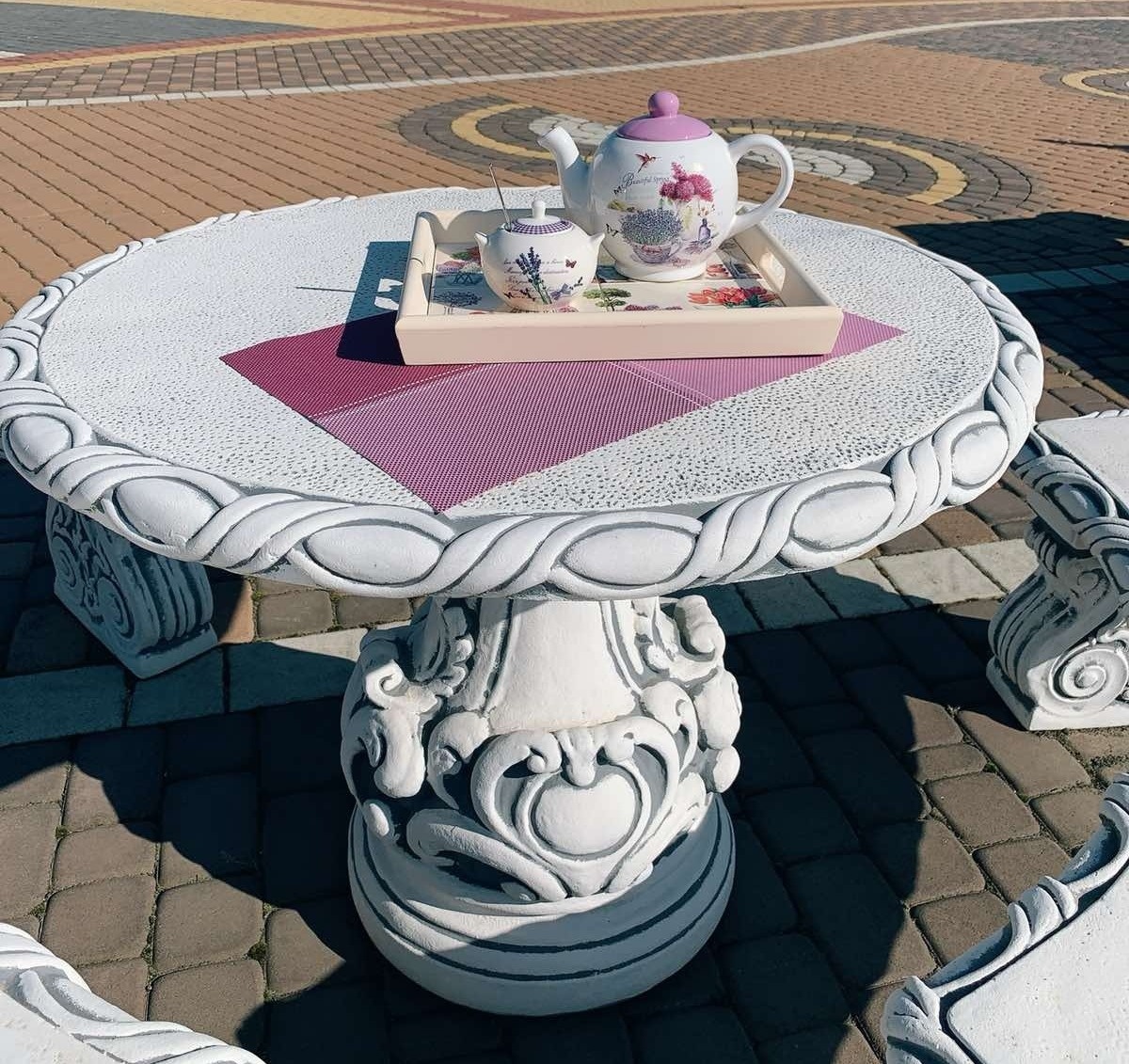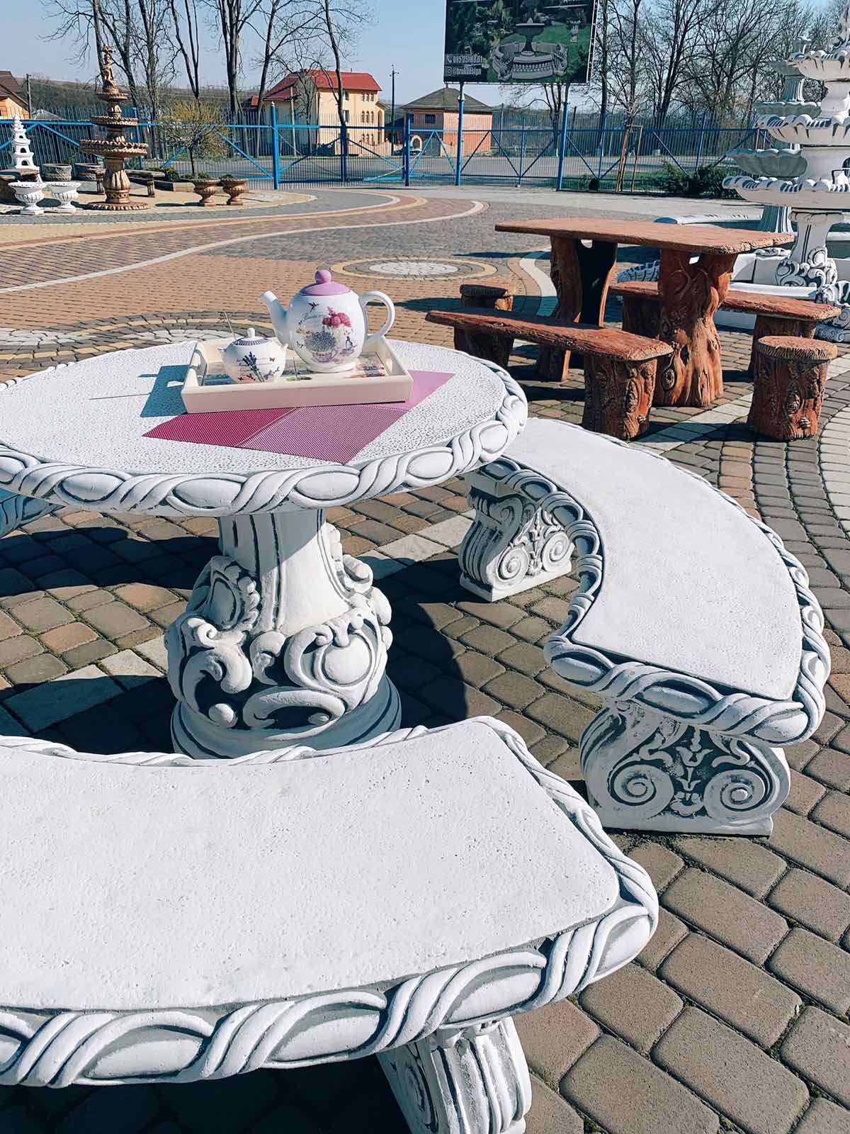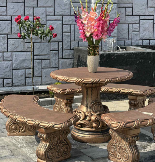 Стіл можна доповнити лавками та бетонними стільцями.