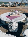 Витончений столик на класичній ніжці, який чудово прикрасить ваш сад , терасу або ресторан . Меблі виготовлені з високоякісного архітектурного бетону, завдяки чому вони стійкі до складних погодних умов (дощ, сонце, мороз).