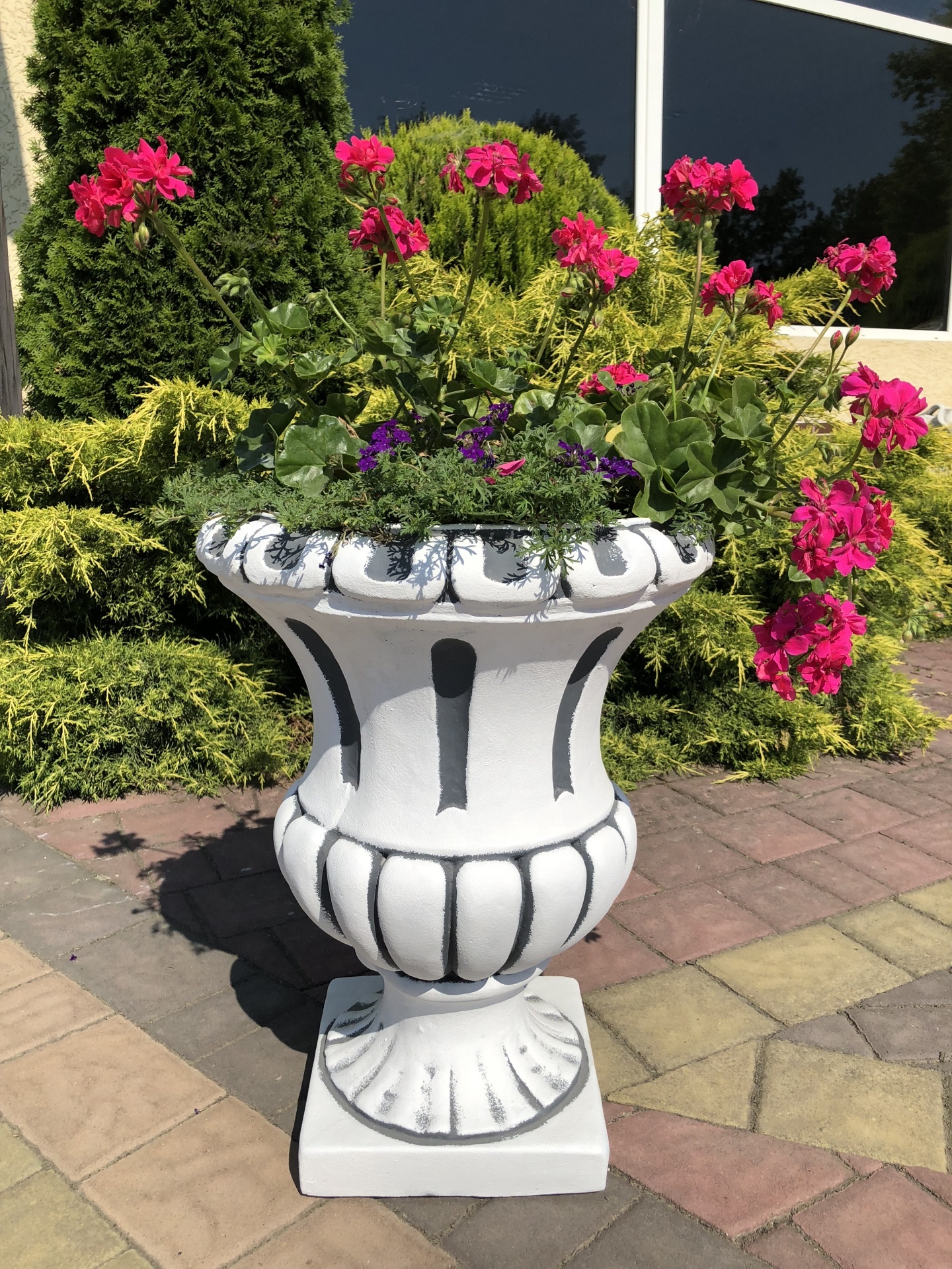 Великий горщик у формі чашки з високоякісного бетону , стійкого до погодних умов. Класична, незмінна прикраса домашнього саду , ідеальний фон для будь-якої квіткової композиції. Також вдало прикрасить терасу і балкон.