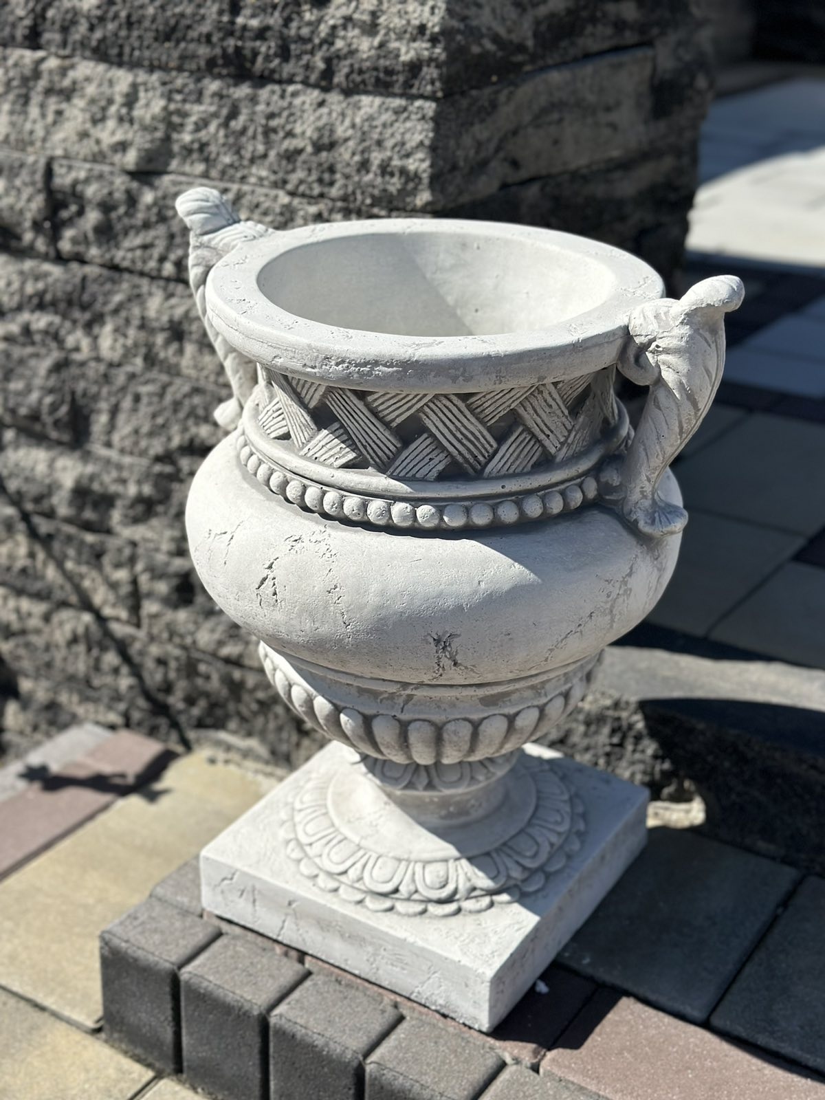 Зовнішній вигляд виробів з архітектурного бетону може незначно відрізнятися від представленого на фотографіях - технічні характеристики виробів надходять від виробників, кожен виріб виготовляється на замовлення і патинується вручну в обраний колір, щоб підкреслити його форми.