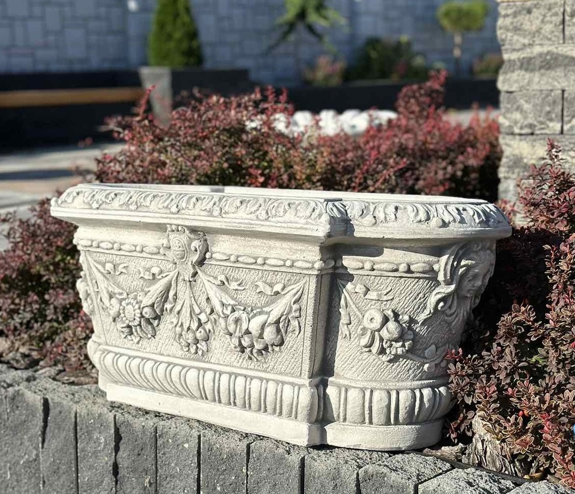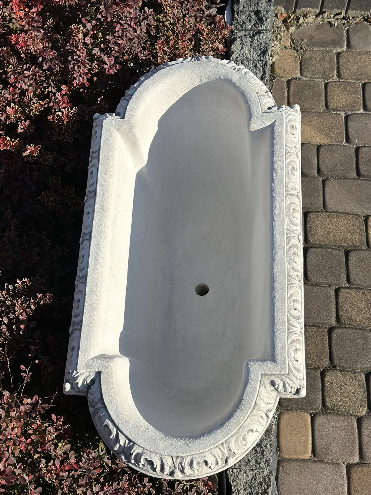 Зовнішній вигляд виробів з архітектурного бетону може незначно відрізнятися від представленого на фотографіях - технічні характеристики виробів надходять від виробників, кожен виріб виготовляється на замовлення і патинується вручну в обраний колір, щоб підкреслити його форми.