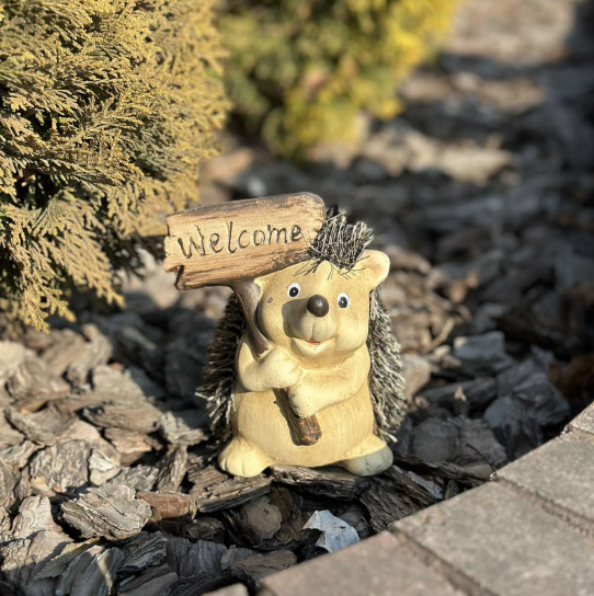 Садова скульптура Їжачок з табличкою "Welcome" полістоун