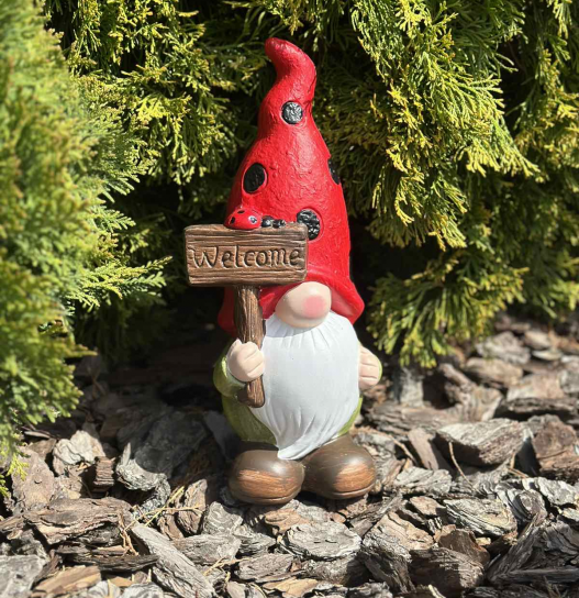 Садова скульптура Гномик із табличкою "Welcome" полістоун