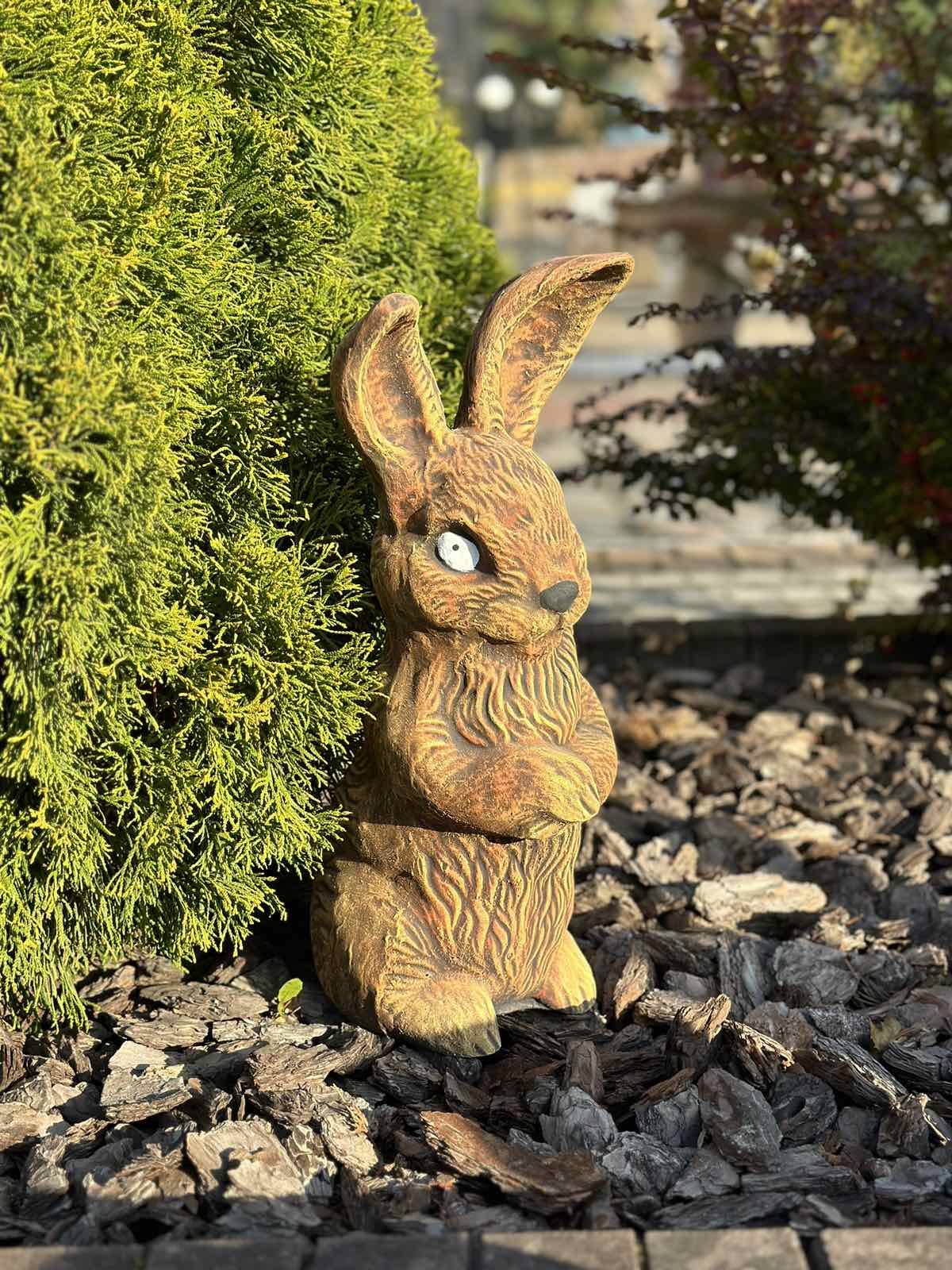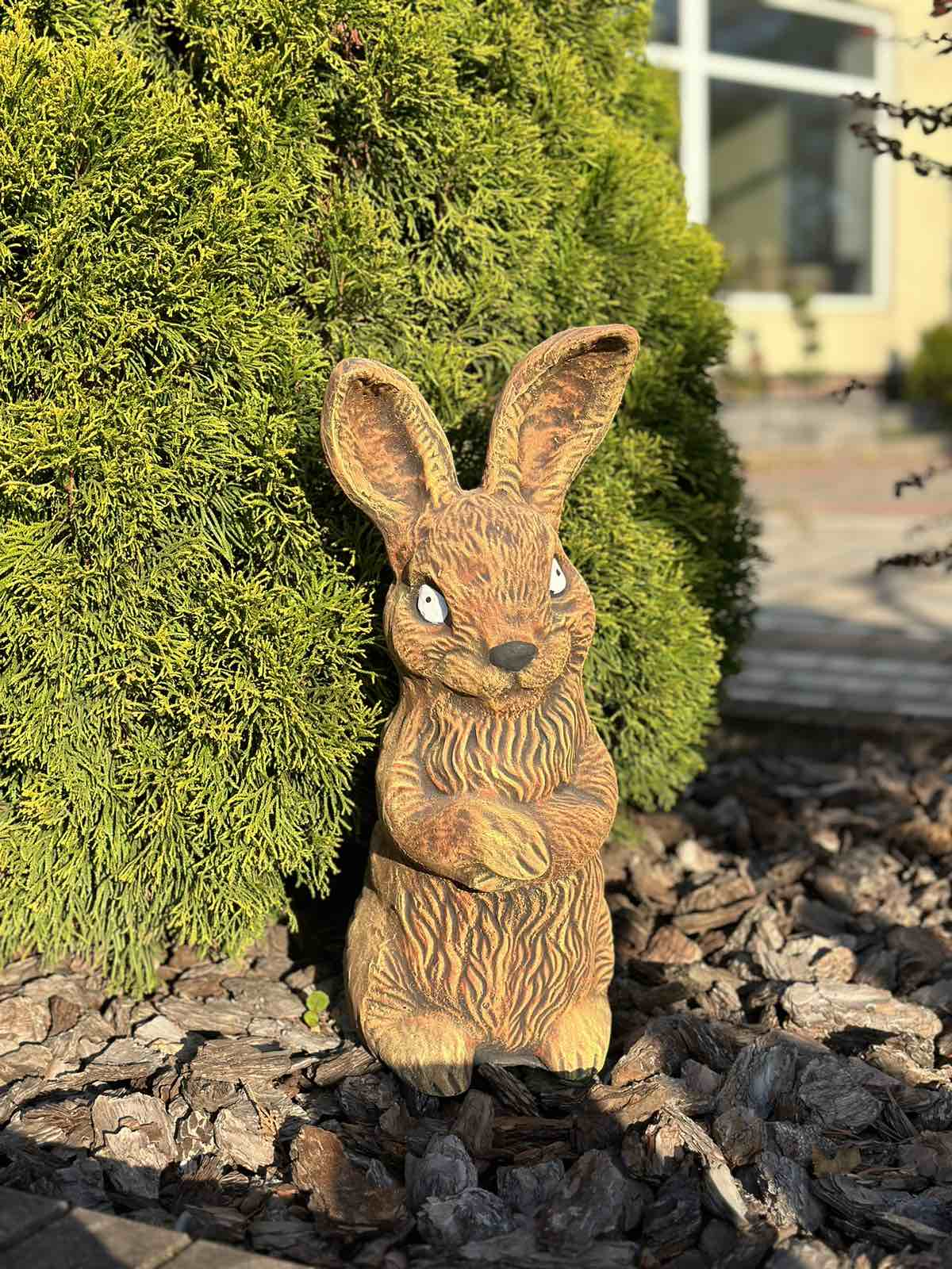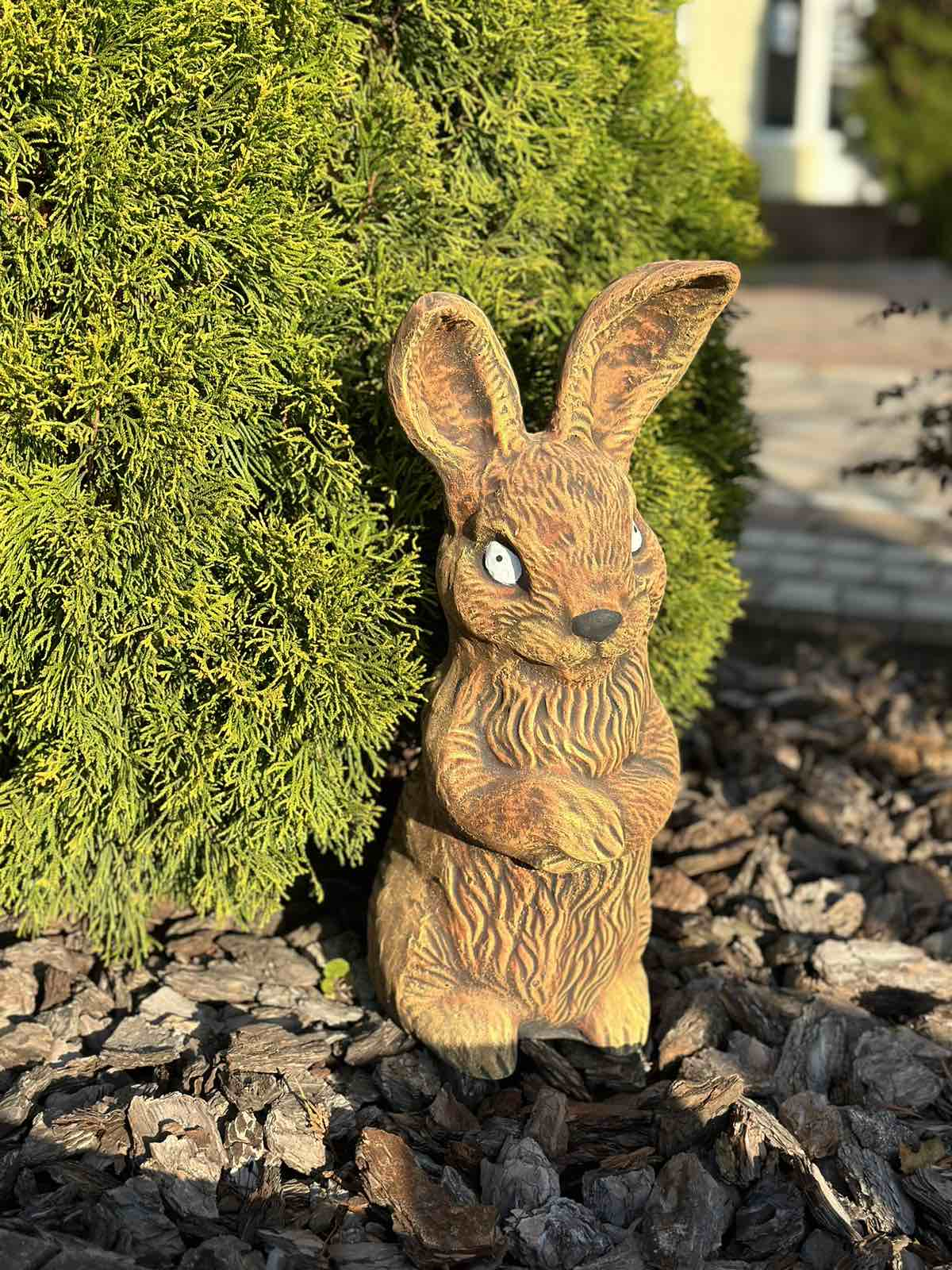 Зайчик - чарівна фігура , яка прикрасить будь-який інтер'єр. Це також чудова ідея подарунка. Фігура виготовлена з високоякісного бетону , стійкого до будь-яких погодних умов (дощ, сонце, мороз).