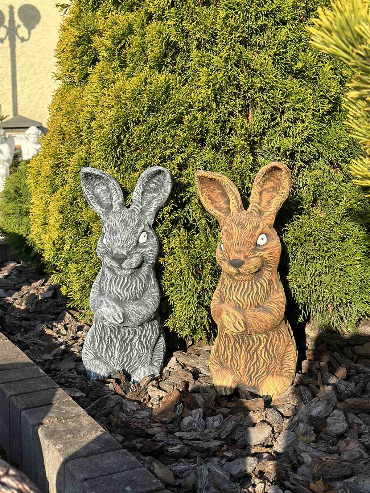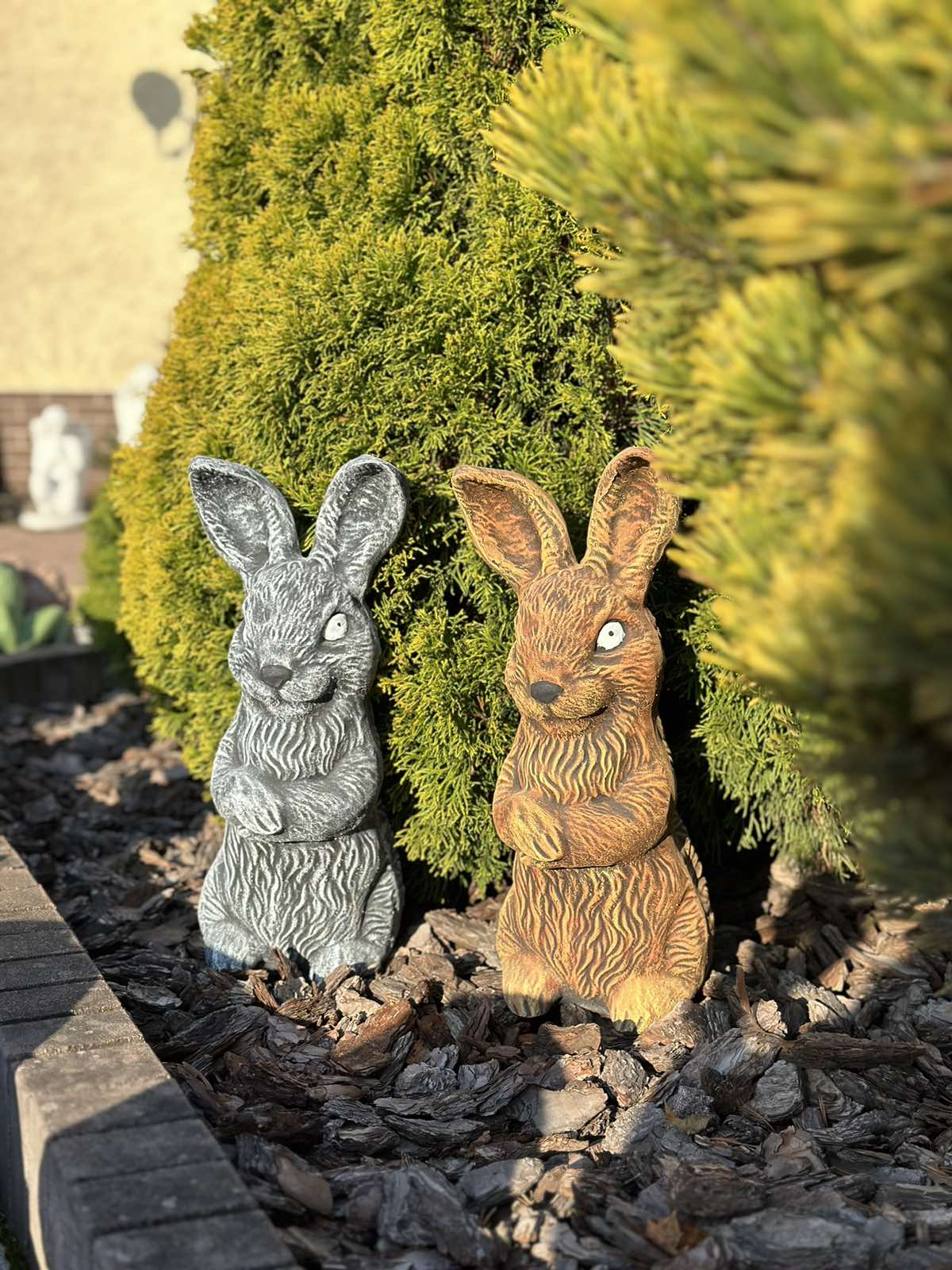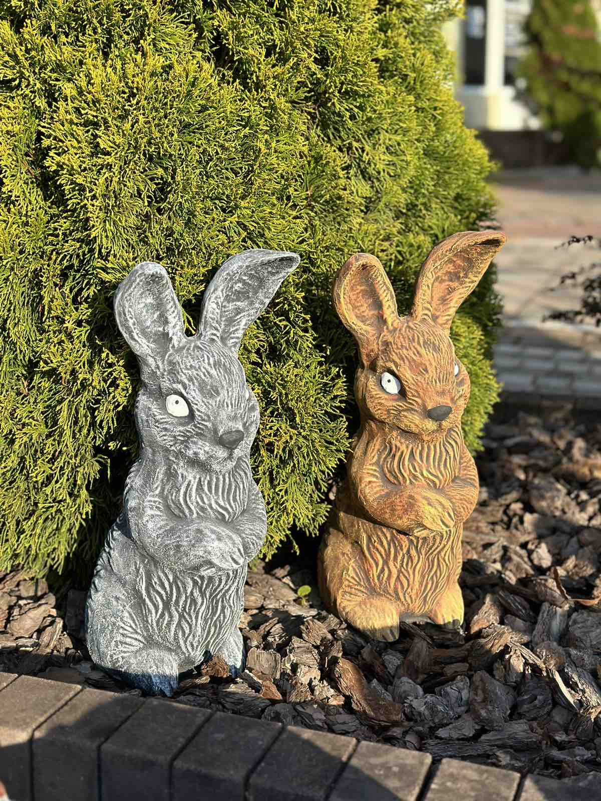 Зайчик - чарівна фігура , яка прикрасить будь-який інтер'єр. Це також чудова ідея подарунка. Фігура виготовлена з високоякісного бетону , стійкого до будь-яких погодних умов (дощ, сонце, мороз).